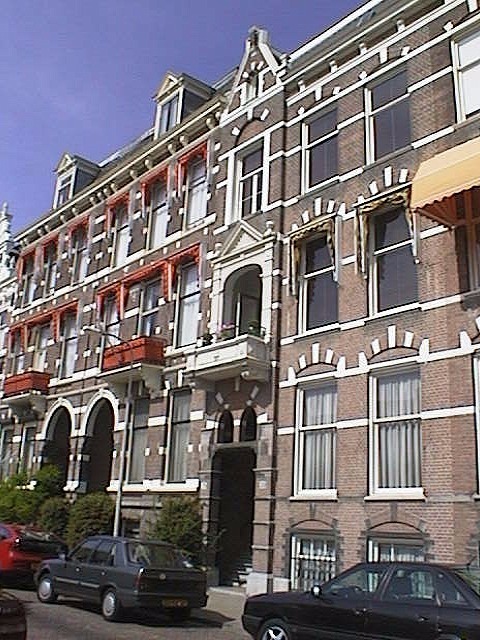 PAND in neo-renaissance trant uit het einde der 19e eeuw met souterrain. De gevel wordt versierd door banden, geblokte strekken en ontlastingsbogen. Rechts een door een puntgevel bekroonde risaliet, waarin de ingang met daarboven een balkon met loggia met pilasteromlijsting.