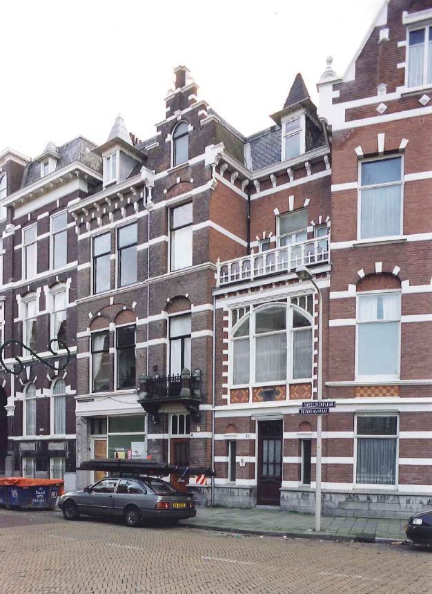 Pand in neo-renaissance trant uit het eind van de 19e eeuw. Rechts een risaliet met ingang en trapgevelbekroning. Links tweedelig venster onder samengestelde ontlastingsboog.