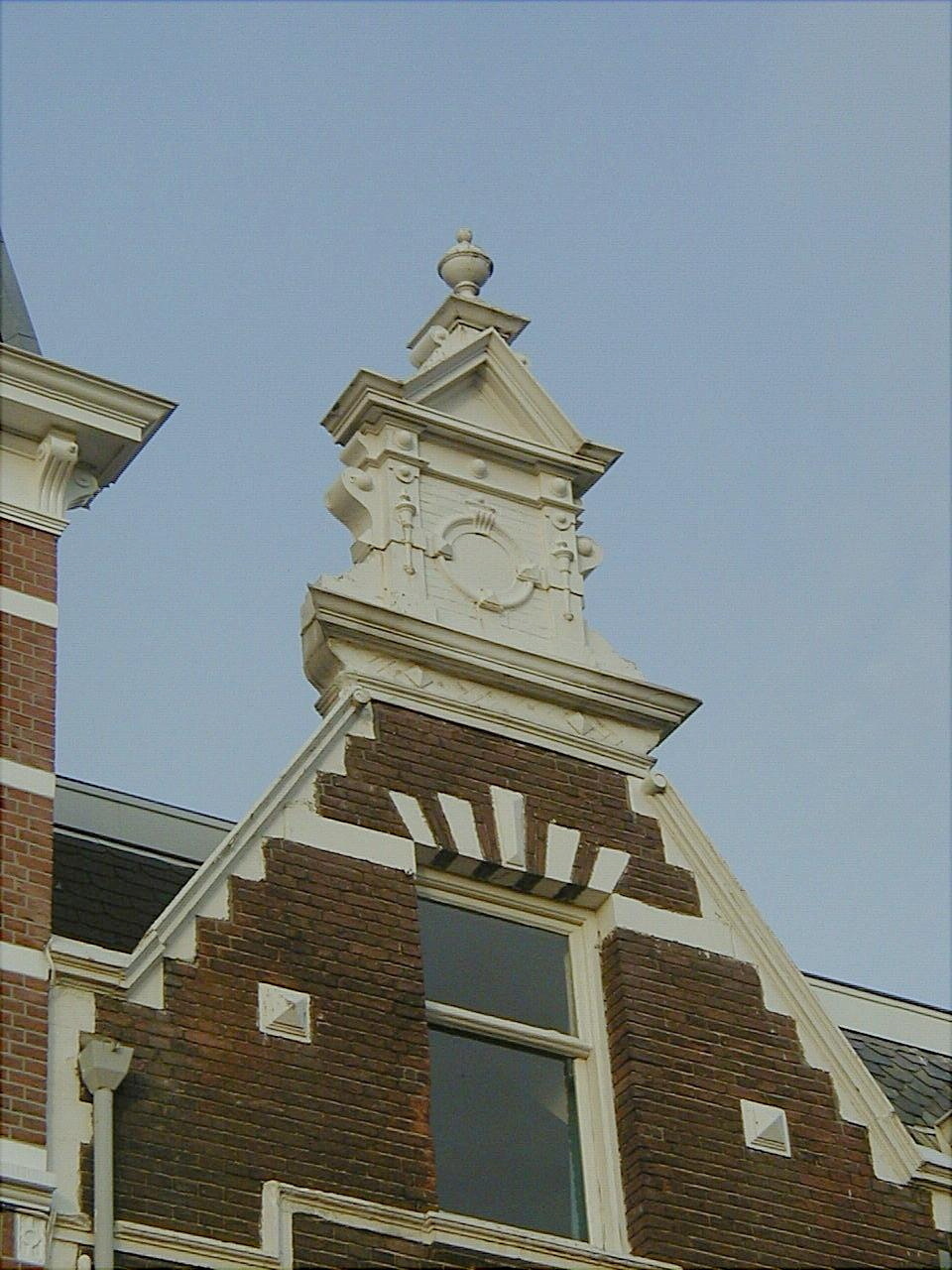 Pand in neo-renaissance trant met links een puntgevel, bekroond door een aedicula-vormige top. Eind 19e eeuw. Ontlastingsbogen, rustend op een leeuwenmasker. Rechts een vleugel onder kroonlijst met dakkapellen. Brede erker op zandstenen consoles.