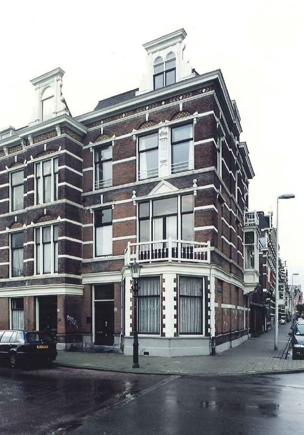 Neo-renaissance pand, eind 19e eeuw, op de hoek van de Waldeck Pyrmontkade. Gevelversiering met banden, ontlastingsbogen en frontons. Erker voor de parterre. Dakkapel met zijvoluten.