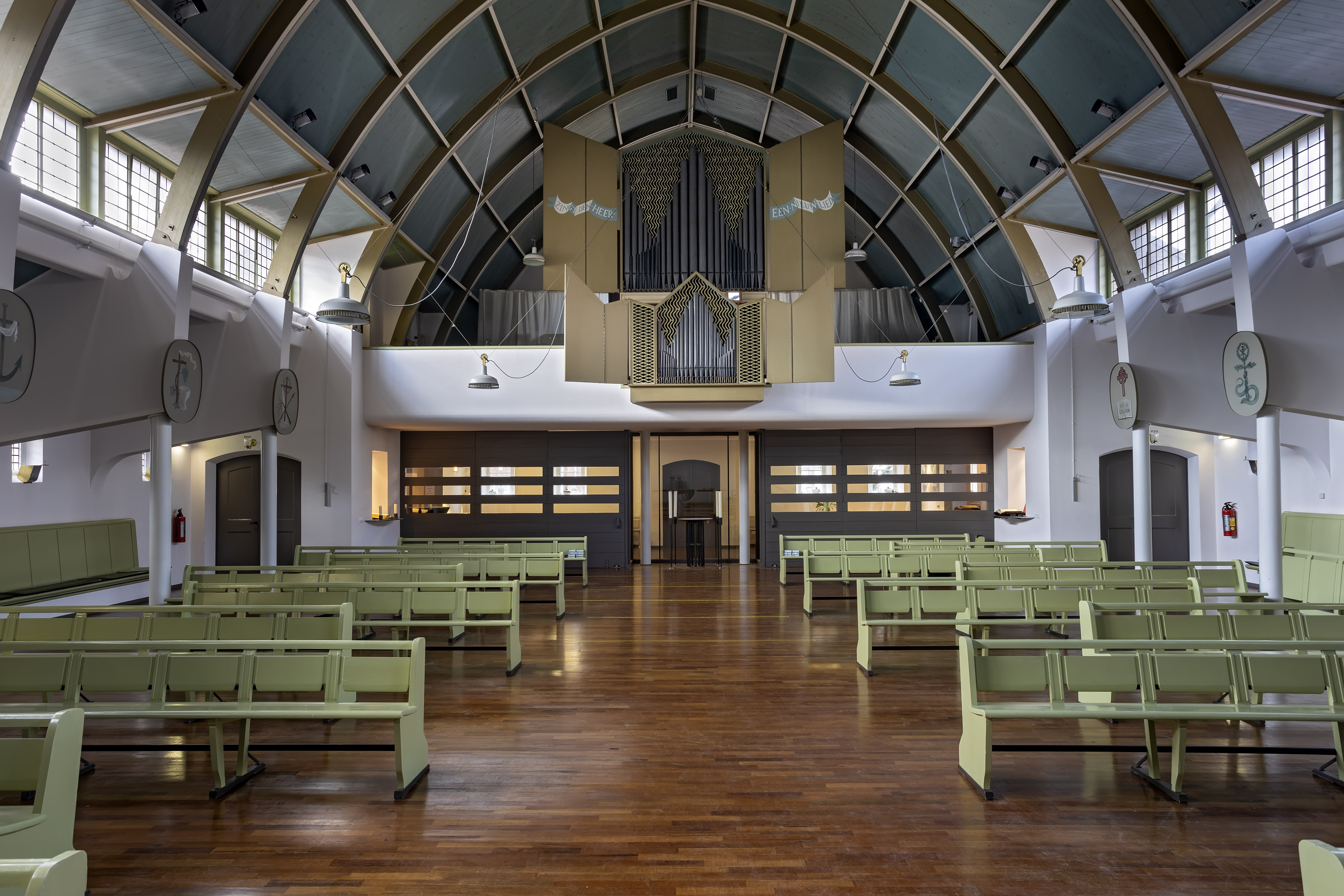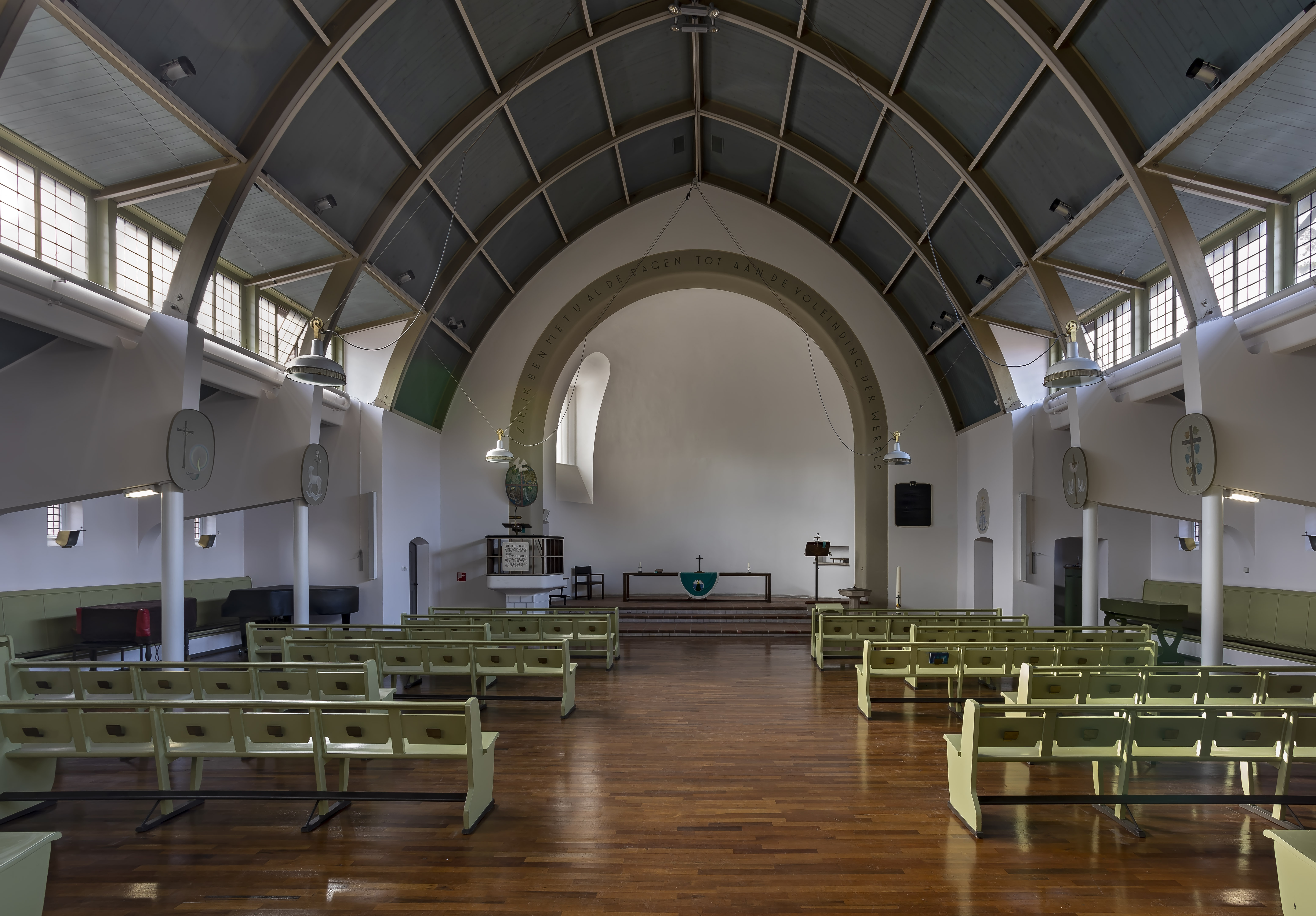 Maranathakerk gebouwd in 1949 als ‘noodkerk’ naar ontwerp van de Duitse architect Bartning en de Zwitserse bouwkundige Staudacher, met aanpassingen van de Nederlandse architect F.A. Eschauzier.