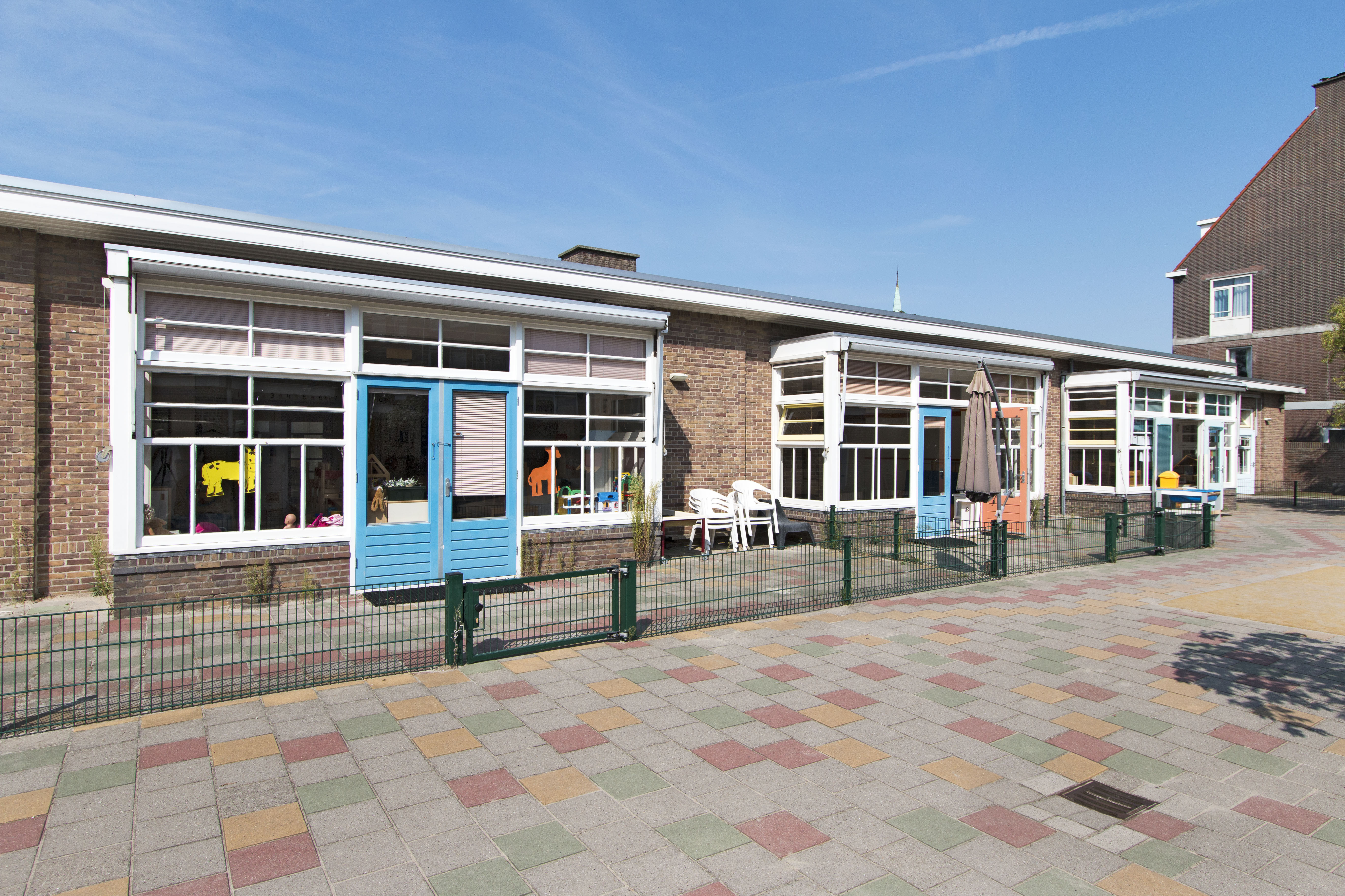 Het als christelijke bewaarschool gebouwde complex bevindt zich op een binnenterrein van de Tesselsestraat in de wijk Duindorp. In deze wijk werden de kinderrijke vissersfamilies uit de gesaneerde delen van Scheveningen-dorp gehuisvest.