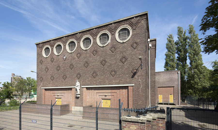 Het TRANSFORMATORSTATION heeft een blokvormige opzet op T-vormige plattegrond en is opgetrokken in baksteen. De baksteen is met name in het voorste deel van het gebouw ook decoratief toegepast. De voorgevel en het voorste gedeelte van de zijgevels zijn voorzien van bakstenen ruitmotieven. De daklijst van het voorste deel van het gebouw wordt geaccentueerd door een driedubbele bakstenen lijst met V-vormige motieven. De streng symmetrische voorgevel wordt extra benadrukt door de zes grote ronde vensters net onder de daklijst en het beeldhouwwerk tussen de twee ingangen. De ingangen met stalen deuren zijn geplaatst in een nis met in kleur afwijkende bakstenen invulling. Hierachter bevinden zich twee transformatoren. Bij reparaties of vernieuwen van een transformator, wordt deze invulling weggeslagen om de transformator te kunnen verwijderen. De roosters in de vloeren voor de ingangen lopen door tot in de transformatorruimtes. Hieronder zit de "olievang", een met kiezels gevulde bak waarin de olie wordt opgevangen die uit de transformators lekt. Zo ook bij de derde (reserve)transformator die rechts achter is geplaatst. Intern is het gebouw voorzien van dikke muren en stalen deuren. Het gebouw heeft een kelder, begane grond, gedeeltelijk één en gedeeltelijk twee verdiepingen. De kelder was hoofdzakelijk bedoeld als kabelruimte, olievang ter hoogte van de transformatoren en een CO?-ruimte voor het bestrijden van brand. Op de begane grond bevinden zich in het voorste deel de twee transformatorruimten welke de volledige hoogte van het gebouw beslaan, inclusief de ronde vensters. Achter de transformatoren bevinden zich vervolgens de schakelruimten over twee verdiepingen. Geheel achteraan bevindt zich een kantoorruimte. De zware HEKPIJLERS ter weerszijden van beide ingangen in het hek, dat het perceel van de openbare weg scheidt, zijn van baksteen en zijn getrapt vormgegeven, zodat de entree vanaf de straat naar het gebouw toe smaller wordt.
