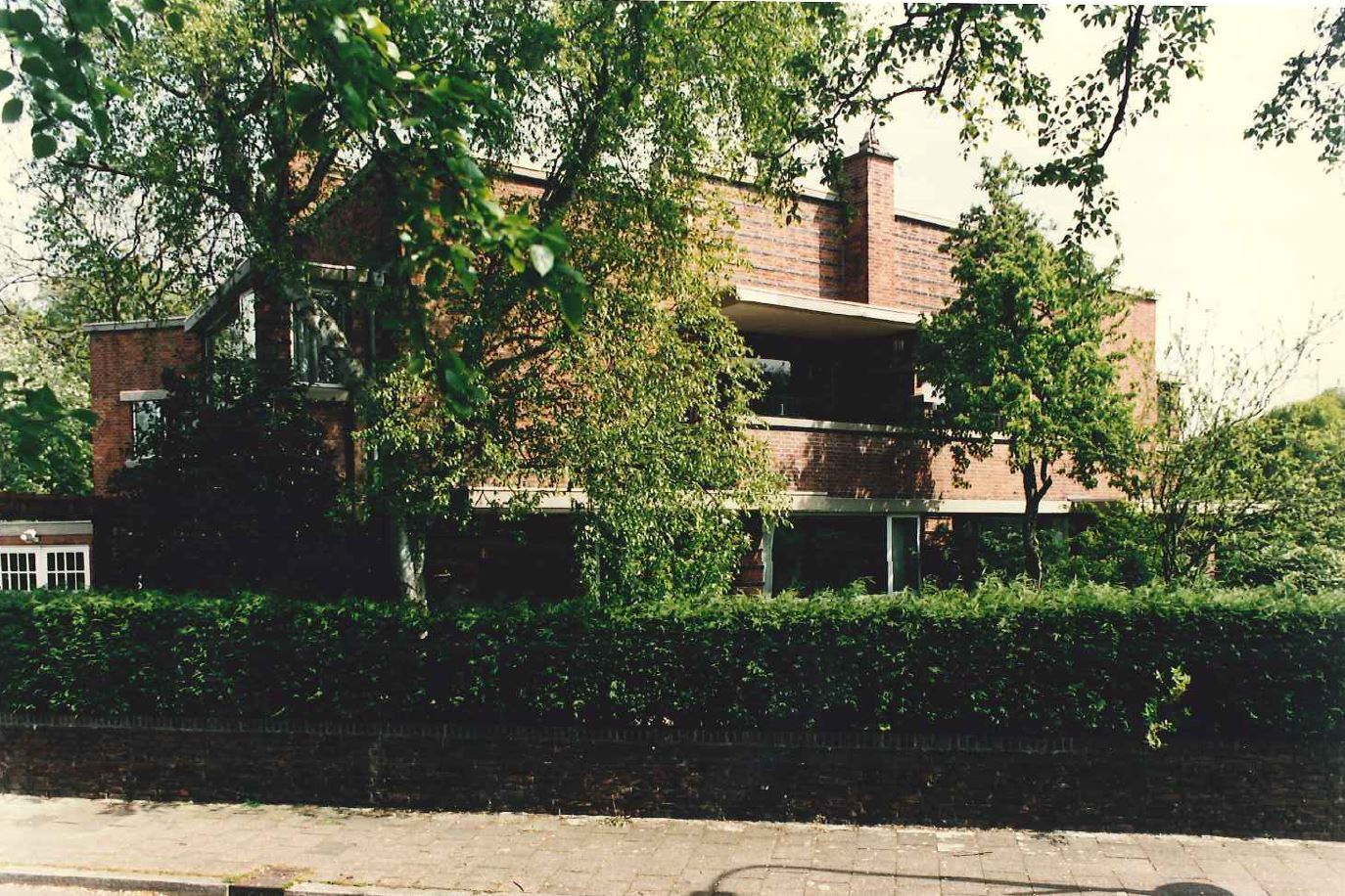 Twee geschakelde herenhuizen die onder een hoek van 45 graden ten opzichte van de rechthoekige kruising liggen, bestaande uit twee bouwlagen onder platte daken. Kenmerkend voor de hier uitgevoerde rode baksteenarchitectuur is onder meer de kubistische opzet van in elkaar grijpende bouwdelen, verspringende gevelvlakken, de ritmische herhaling van de schoorstenen, de toepassing van overdekte balkons, erkers en terassen, pergola's en lage tuinmuren, de overheersende horizontaliteit in de vorm van betonnen lateien, dorpels, afdekplaten en luifels en het aansmeren van horizontale baksteen met zwarte teer. De tuinmuren en de pergola's vormen een wezenlijk onderdeel van de architectuur waarmee de geleidelijke overgang van binnen naar buiten wordt geaccentueerd. De vensters van no.14 zijn door kunststoframen vervangen; die van no.24 door aluminium.