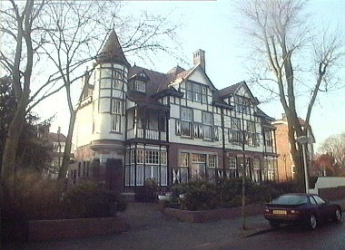 Linkerdeel van dubbelvilla op rechthoekige plattegrond, bestaande uit twee bouwlagen onder een met pannen gedekte samengestelde kap. Het dak bezit hoge gemetselde schoorstenen, pirons en dakkapellen met driehoekig fronton met vakwerk. De bakstenen gevels zijn op de tweede bouwlaag gepleisterd. De rechteras van de voorgevel is als risaliet behandeld en bezit een top met vakwerk en driehoekig fronton met houten briefpanelen. Links daarvan bevinden zich op de eerste en tweede bouwlaag respectievelijk een erker en een veranda met houten balustrade, onder een lessenaarsdak op houten staanders. Op de hoek bevindt zich een ronde arkeltoren met vakwerk, gedekt door shingles. Onder de arkeltoren is de ingang - een houten paneeldeur - in een bakstenen portaal met hardstenen onderdelen gesitueerd. De vensters bezitten houten kozijnen en zijn voor het merendeel onderverdeeld in kleine roeden. In de bovenlichten is gekleurd glas aangebracht. De vensters en openslaande deuren op de begane grond van de risaliet zijn voorzien van een hardstenen omlijsting aan de bovenzijde. De drie assen brede zijgevel verspringt naar achteren toe; in het middendeel is een zij-ingang met daarboven een hoog houten kruisvenster met glas-in-lood. Tegen het achterste deel bevindt zich een hoge uitgemetselde schoorsteen. Aan de bovenzijde van de gevel is vakwerk aangebracht.