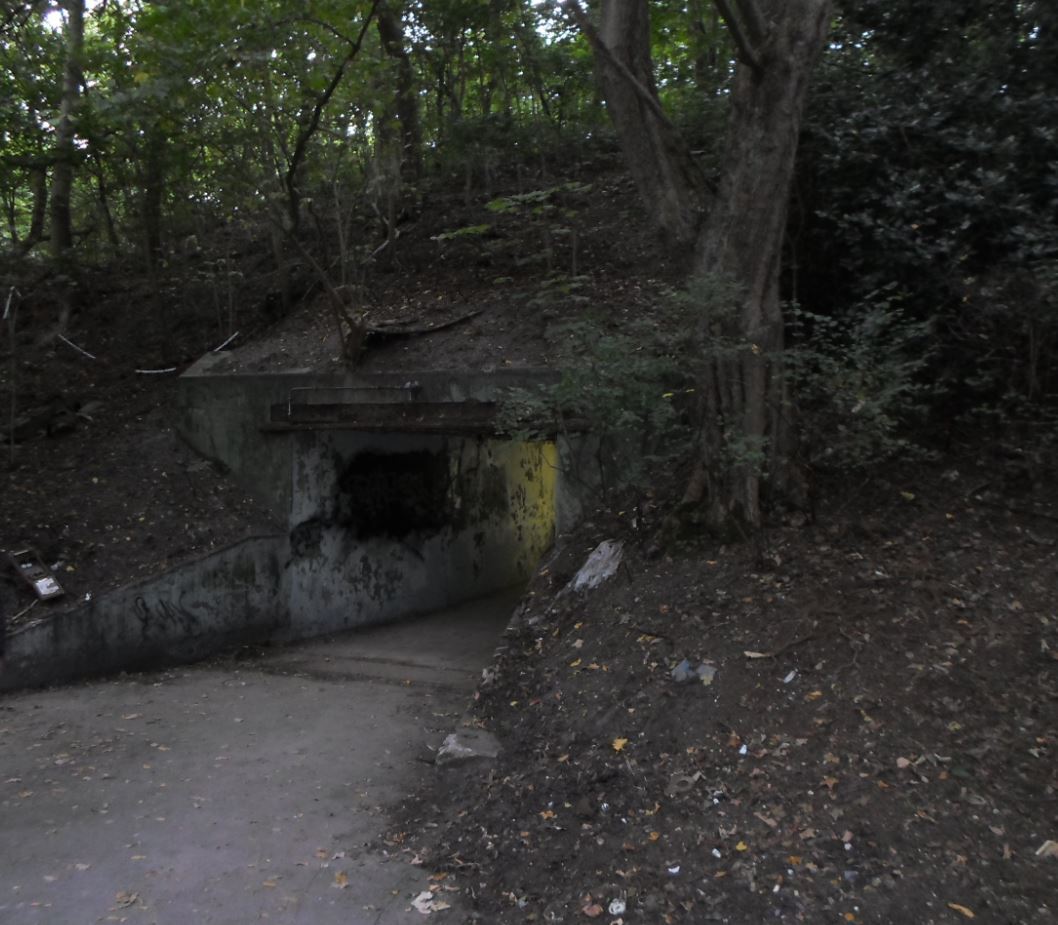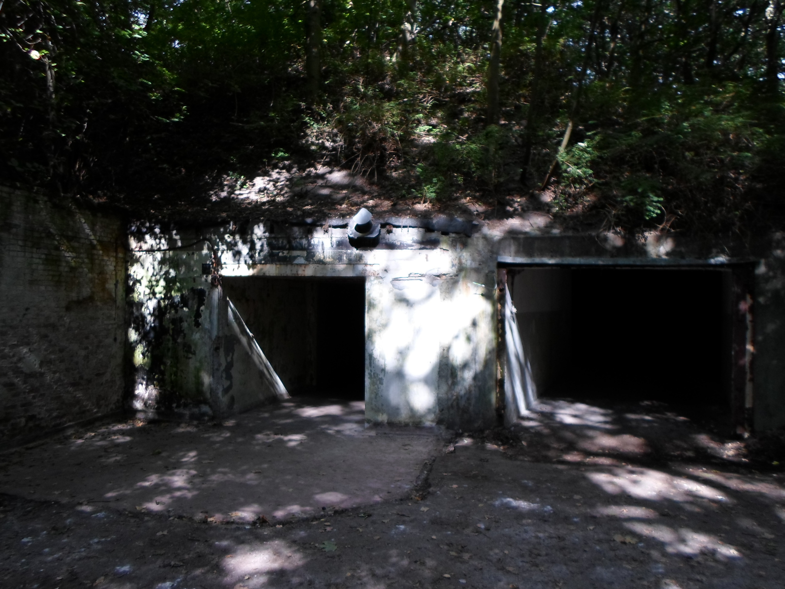 achterkant een brede ingang. Vanuit een ruimte in de bunker kon elke ingang via een afsluitbaar