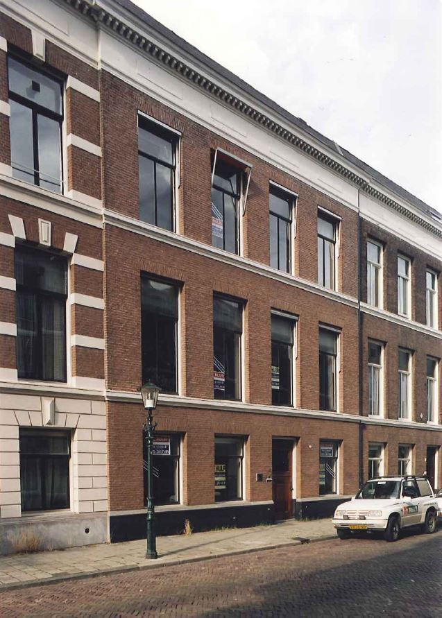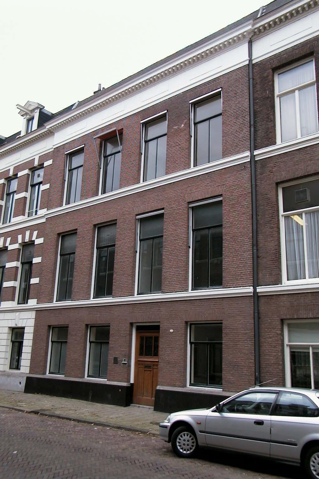Pand met lijstgevel in eclectische trant; ca. 1881 gebouwd door aannemer-metselaar C.M. van Vianen. Parterre en twee verdiepingen; breedte: vier vensterassen. Hardstenen plint, twee cordonlijsten. Houten kroonlijst met klossen.