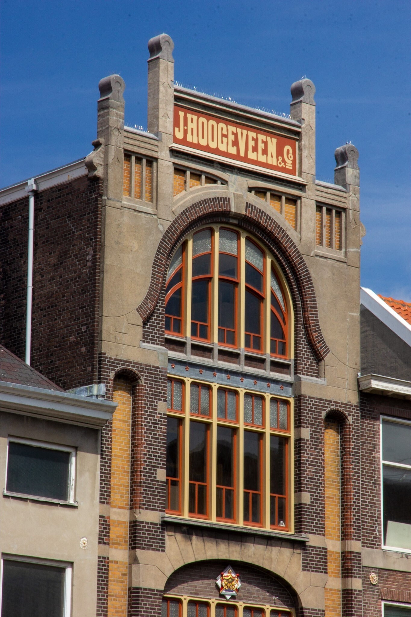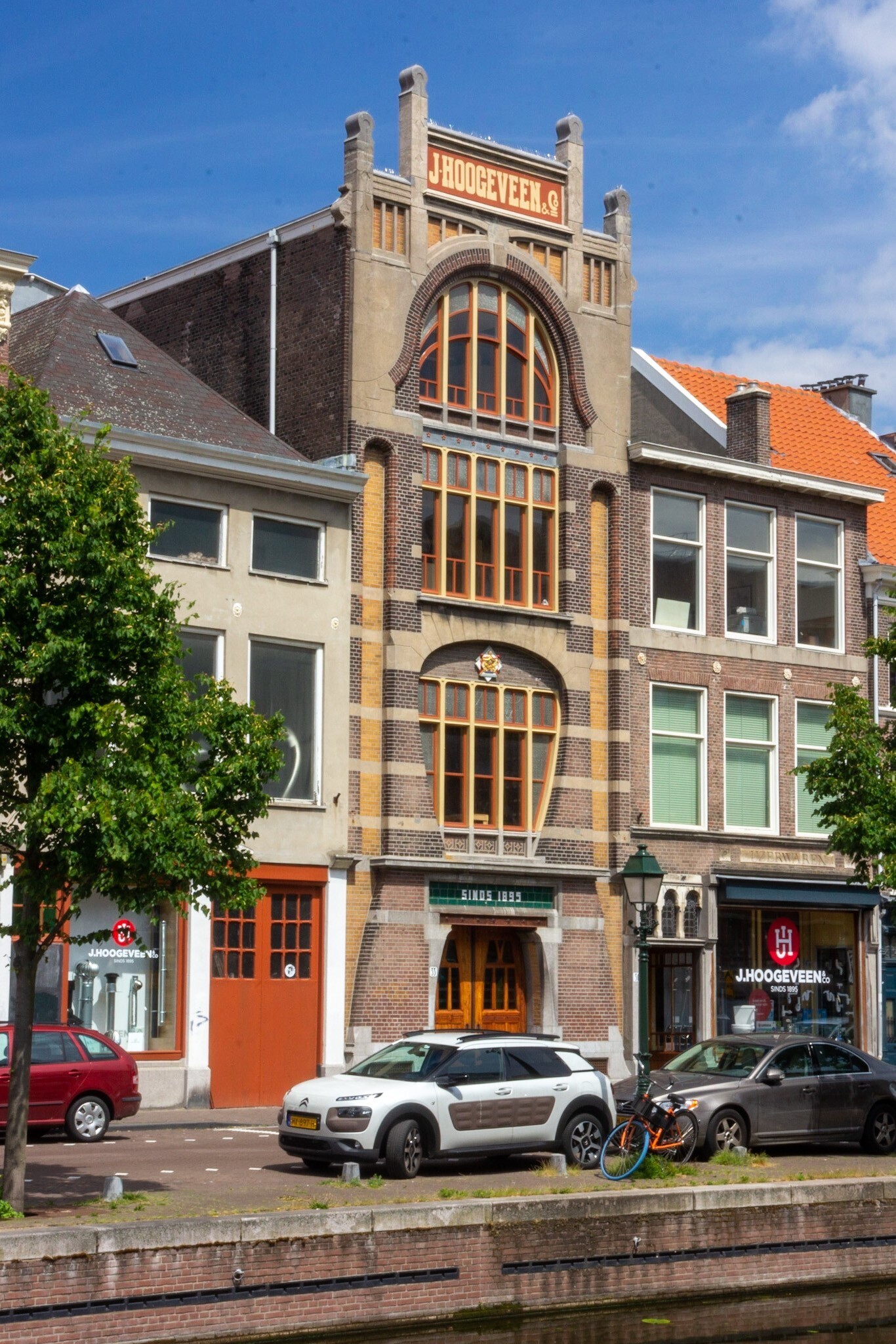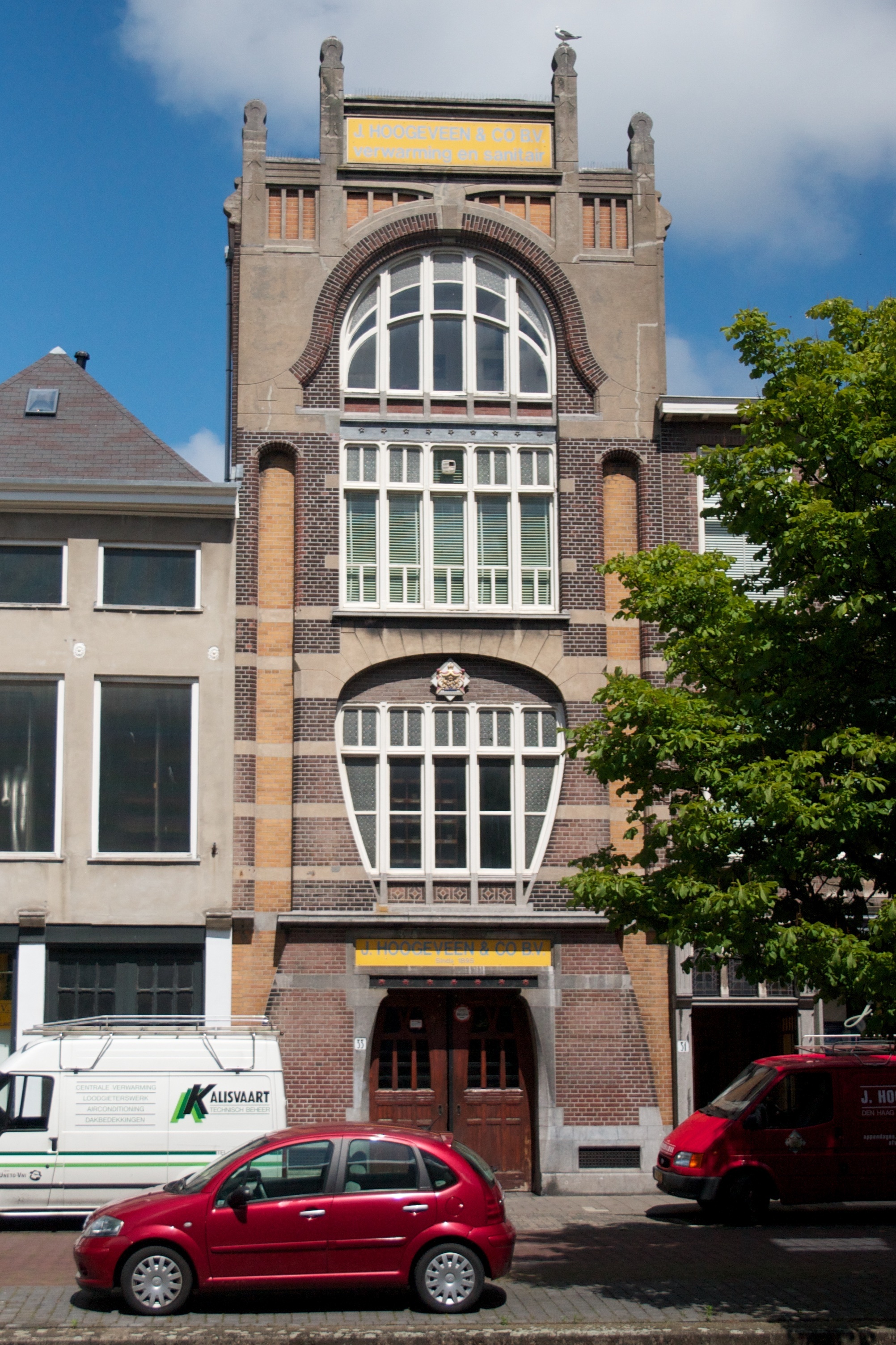 Pakhuis, gebouwd in 1901 voor de firma in verwarming en sanitair J. Hoogeveen en Co., naar ontwerp van W.B. van Liefland in de stijl van de Weense Sezession.