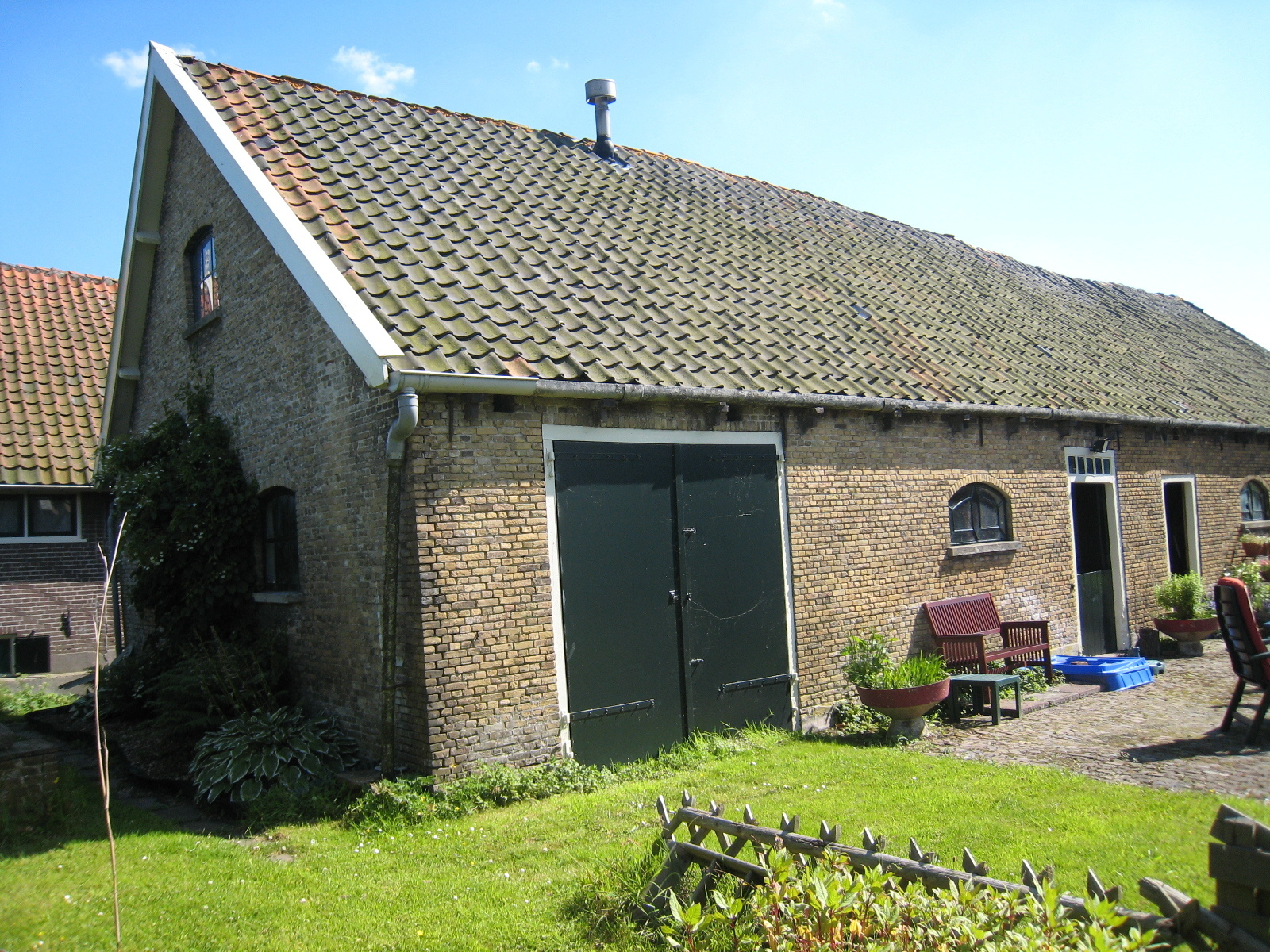 De oorspronkelijke stal in het linker deel is in 1970 eveneens verbouwd tot woning waarvoor de stalramen in de voorgevel zijn vervangen door nieuwe vensters. Evenwijdig aan de langhuisboerderij is aan de achterzijde een iets korter stalgebouw, eveneens op rechthoekige plattegrond en bestaande uit één bouwlaag onder een met pannen gedekt zadeldak. Dit stalgebouw is door middel van een verbindingsgang direct met het hoofdhuis verbonden. Tot de waardevolle elementen van deze boerenhoeve behoort voorts nog een hooiberg met vier betonnen roeden.