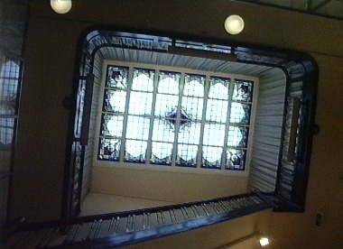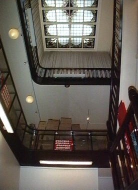 Het interieur bestaat op begane grond en verdiepingen uit ongedeelde winkelruimten. In het midden bevindt zich een forse vide waaromheen de trap is gesitueerd om de diverse verdiepingen te bereiken. De trap is uitgevoerd in mahonie hout. De vide zorgt voor lichttoetreding in de zaak door middel van een forse lichtbak afgesloten met een houten legraam waarin Art Deco glas-in-lood is aangebracht. In het interieur zijn op de verdieping nog interieurkasten aanwezig. Verder is veel gemoderniseerd.