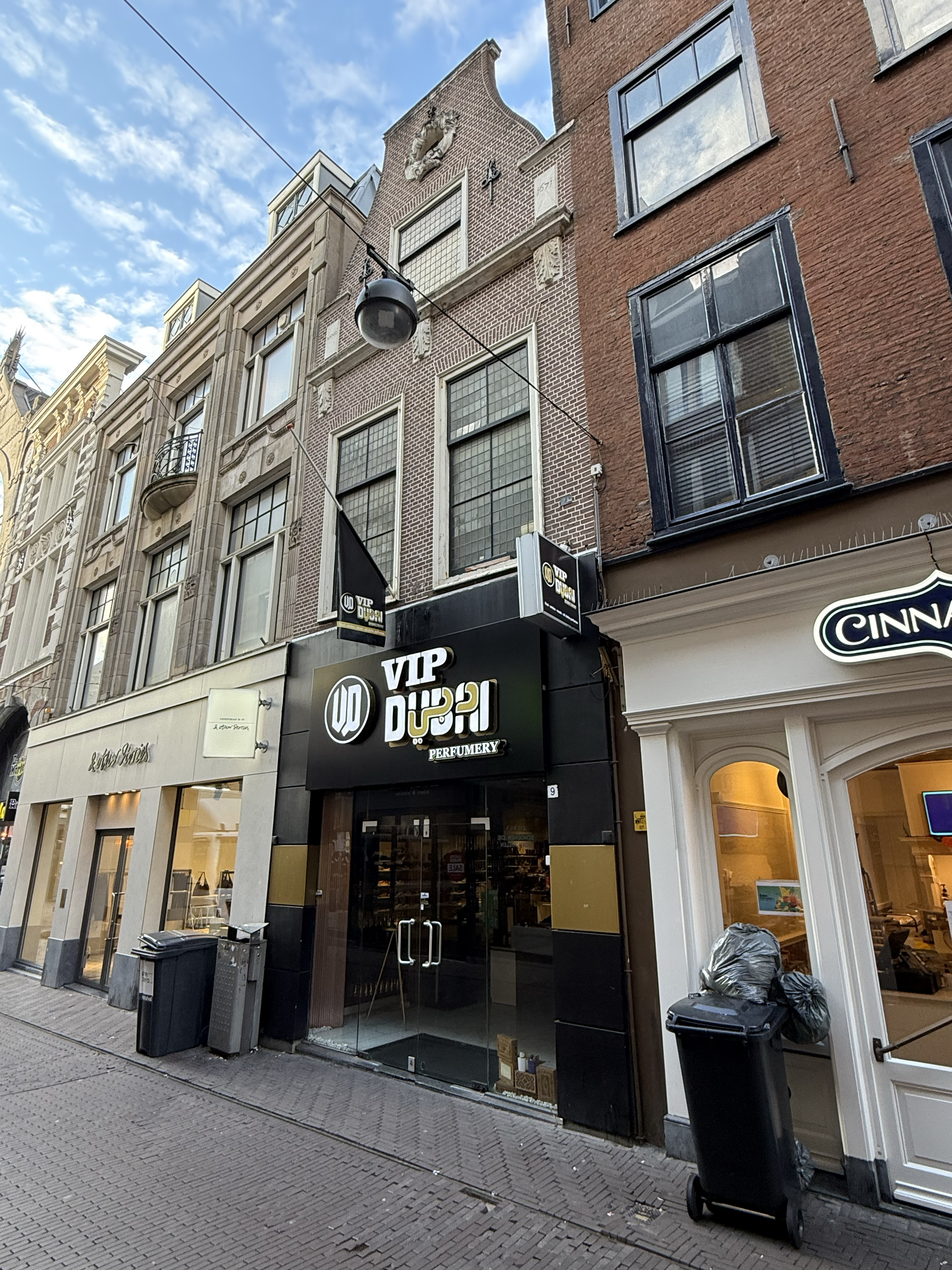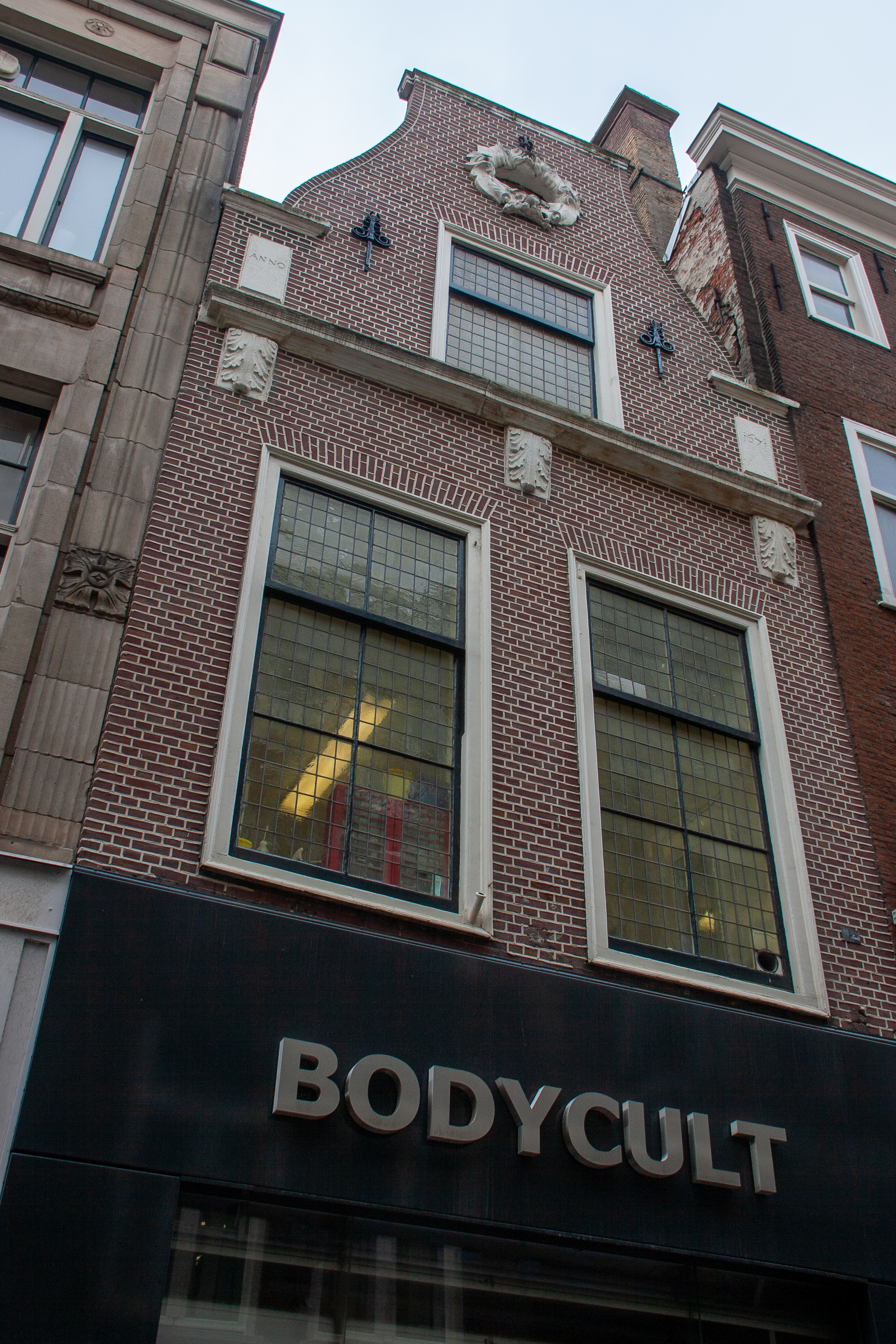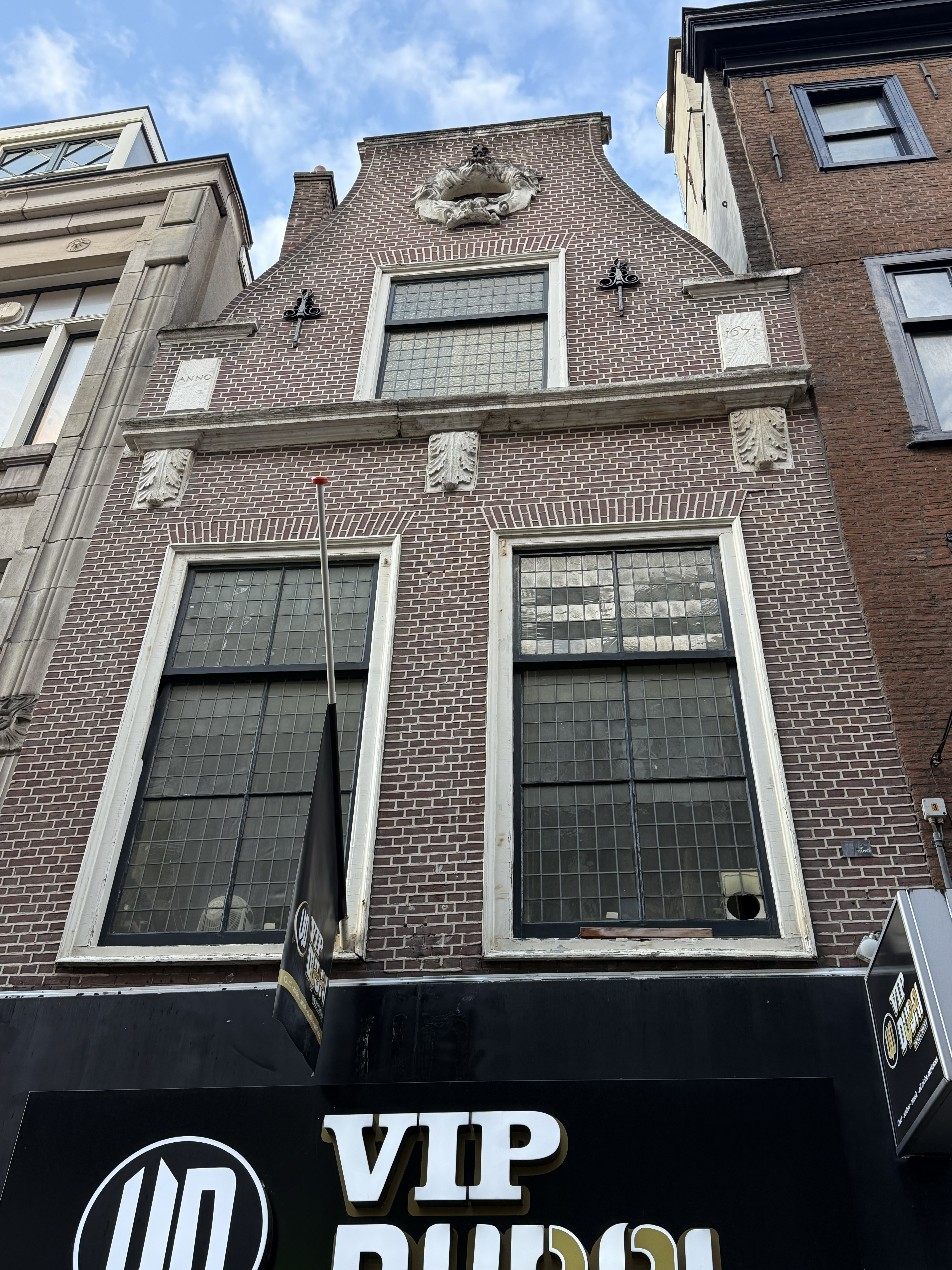 Pand, bestaande uit twee bouwlagen met kapverdieping, ter breedte van twee vensterassen, gebouwd in 1671. De gevel heeft een nieuwe beklamping gekregen in het eerste kwart van de 20ste eeuw. De ingezwenkte geveltop rust op een geprofileerde, natuurstenen waterlijst die gedragen wordt door drie gebeeldhouwde bladconsoles in Lodewijk XIV stijl. Hierboven aan weerszijden een steen met opschrift "anno" en "1671". De geveltop heeft geprofileerde zijdekplaten, een met rijk beeldhouwwerk omlijst oeil-de-boeuf, twee sierankers en een geprofileerde kroonlijst. De vensters bezitten geprofileerde houten omlijstingen en in de verdieping zesruitsschuiframen.