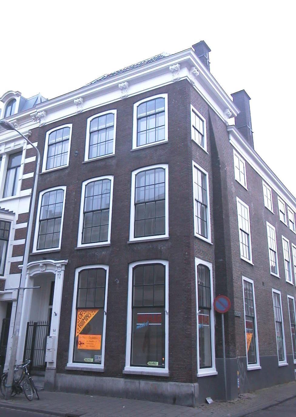 Pand met Lodewijk XIV gevel met rechte kroonlijst op gesneden consoles en versierde deuromlijsting.
