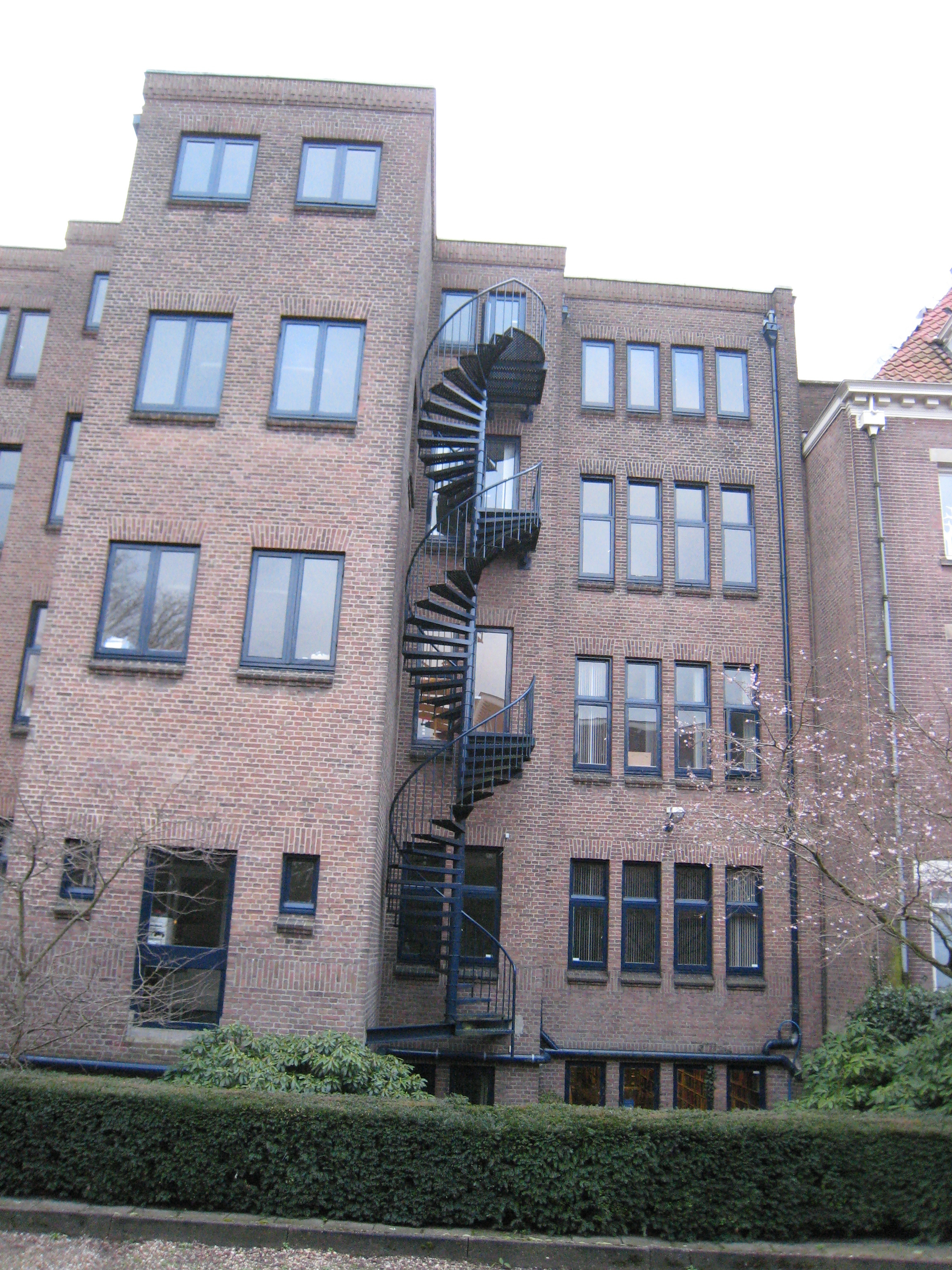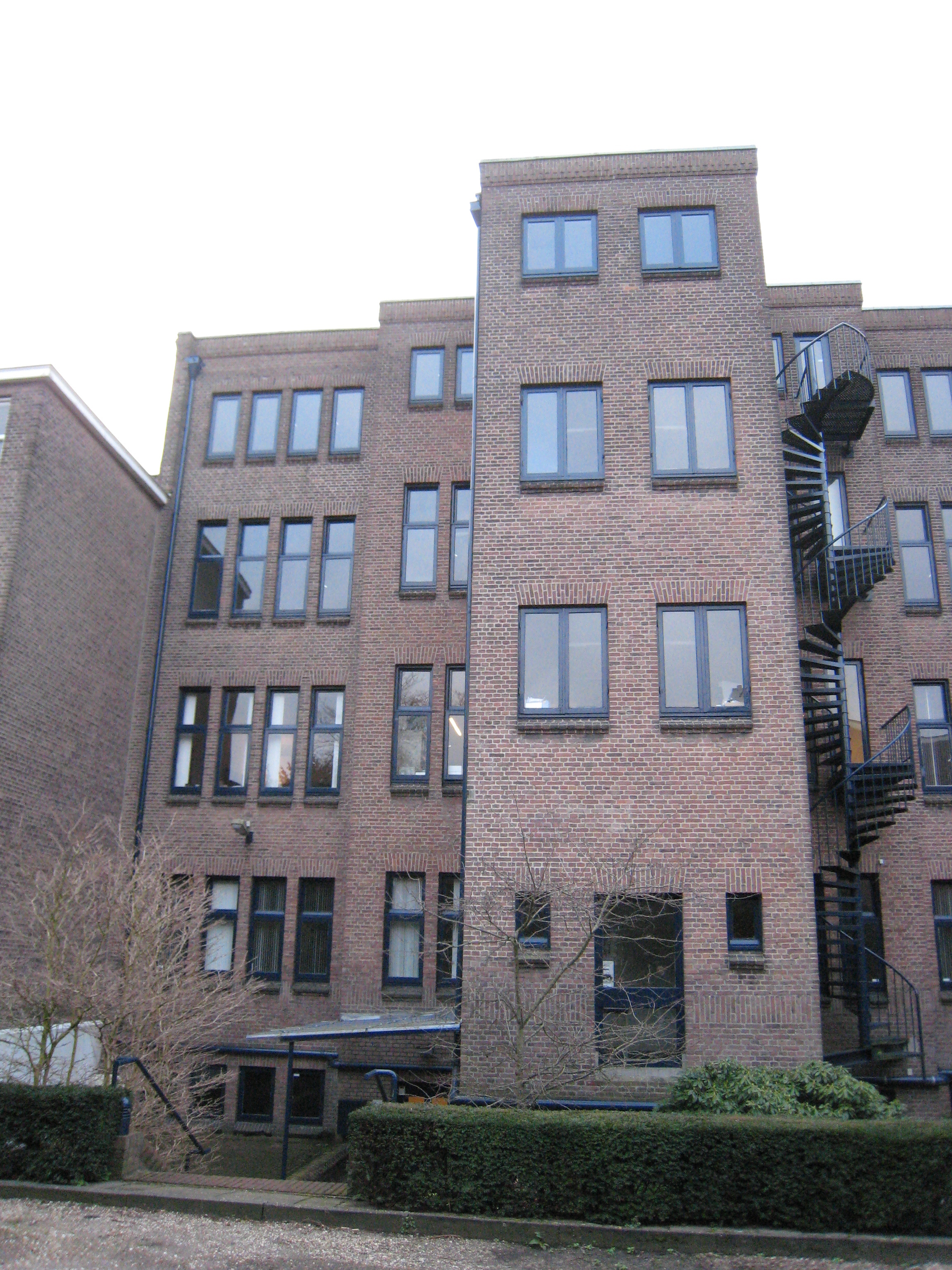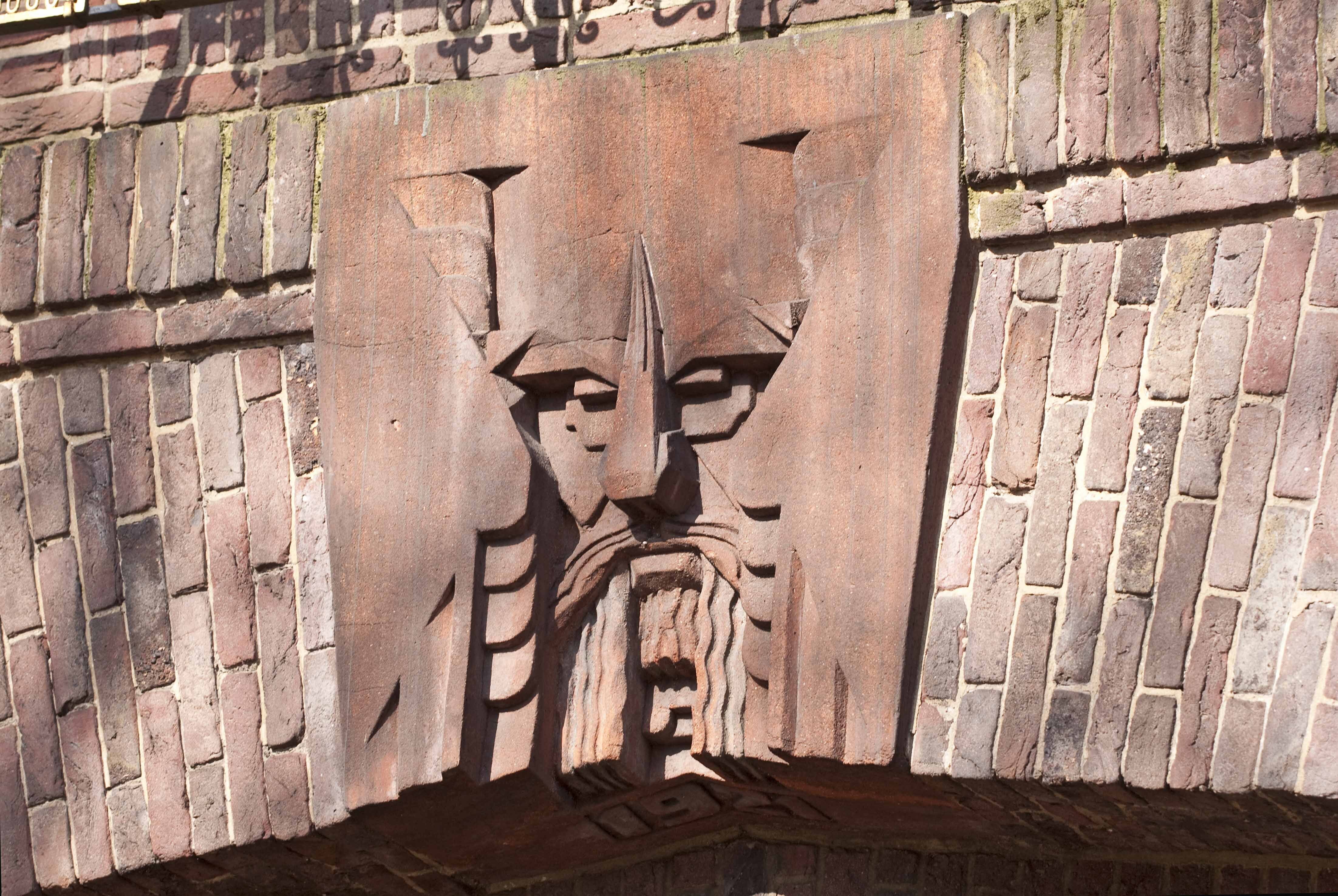 Het pand is opgetrokken in een expressionistische baksteenarchitectuur en bestaat uit een kelder, parterre en drie verdiepingen met plat dak. De voorgevel vertoont een terugliggend middengedeelte tussen risalerende zijvleugels. Het middendeel, waarin de ingangspartij, telt drie vensterassen; de zijvleugels bezitten per bouwlaag een reeks van vier kleine, gekoppelde vensters met figuratief glas-in-lood in de bovenlichten. De voordeur heeft een taps toelopende omlijsting met een geknikte boog, voorzien van een gebeeldhouwde sluitsteen met maskerkop. De dubbele deur met ijzerbeslag is bij de restauratie in 1991 aangebracht en is een navolging van de authentieke deur, die enige decennia geleden is vervangen. De gevel wordt verticaal geleed door geprofileeerde, bakstenen muurdammen. Onder de gootlijst een reeks gebeeldhouwde ornamenten in expressionistische vormgeving.