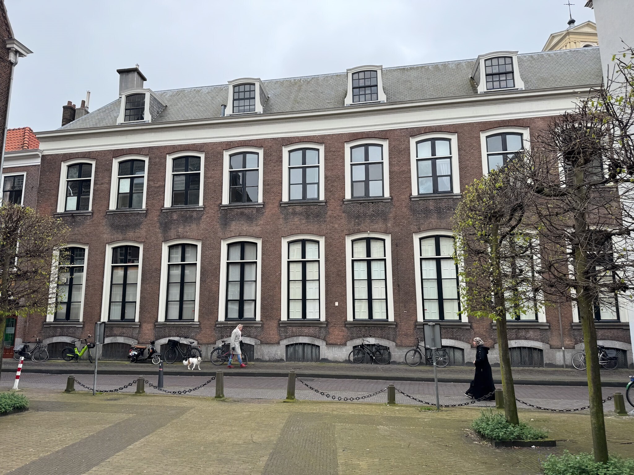 Pand met langgerekte bakstenen gevel met terugliggend gebogen ingangspartij uit 1754 - inwendig rijke decoraties uit de tweede helft van de 18e eeuw.