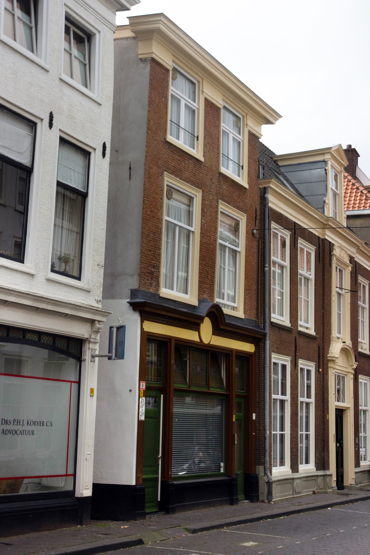 Pand met 18e eeuwse gevel met rechte kroonlijst.