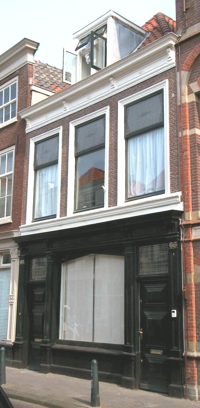 Pand bestaande uit parterre met verdieping en schilddak met dakkapel. De lijstgevel heeft een winkelpui van hout, derde kwart 19de eeuw en geprofileerde houten vensteromlijstingen.