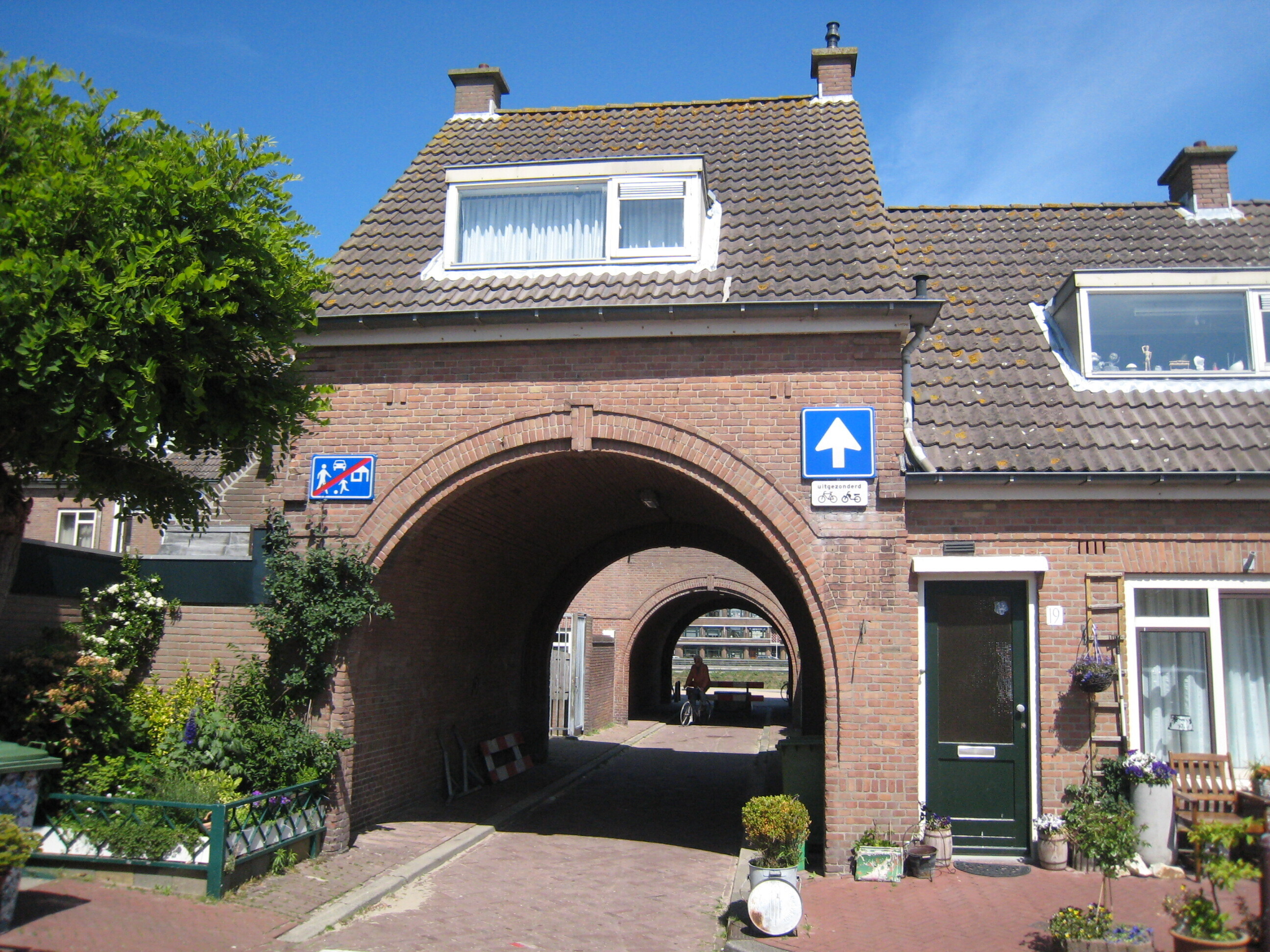 Naar rationalistisch ontwerp van W. Greve en P.C. Albers in 1916-17 uitgevoerde BINNENRING met poorten van het gemeentelijk woningbouwcomplex Zeezwaluwhof.