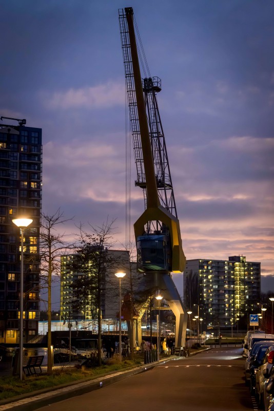 De kraan aan de Neherkade zal ook worden aangelicht na oplevering van het bouwplan.