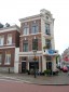De afgeschuinde hoektravee is rijk uitgevoerd met onder meer geprofileerde omlijstingen op de verdiepingen en een rondboogvormige gevelbeëindiging. Deze travee is voorzien van een geblokte bepleistering. De winkeldeur van de hoektravee heeft panelen met glas en een frontonversiering onder het gedecoreerde deurkalf waarboven een bovenlicht. Het venster hierboven, voorzien van een balcon met decoratief opengewerkte borstwering, draagt een kroonlijst met daarboven een oeil de boeuf als zoldervenster. De kroonlijst is boven de hoektravee half cirkelvormig verhoogd met een trapgevelachtige gevelbekroning. De deur naar het woonhuis Frederikstraat 4, bezit een versierd kalf en een bovenlicht.