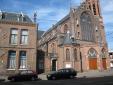 Gebouwd in 1902-1903 naar ontwerp van de architectencombinatie Albertus Arnoldus (Johannus) Margry en J.M. Snickers. Gerestaureerd na een brand in april 1983, waarbij de bekappingen van de kerk verloren gingen en het interieur aan zienlijke schade opliep. Het herstel kwam gereed in december 1984. Driebeukige neogotische kruisbasiliek met rechthoekige zijkapellen aan weerszijden van het koor en achthoekige toren met wimbergen en slanke naaldspits rechts naast de voorgevel. Links van de voorgevel een met vijf zijden van een achthoek uitgebouwde doopkapel met tentdak; in het midden tegen de voorgevel een eveneens vijfzijdig uitgebouwd portaal met wimberg en kantelenversiering. De voorgevel van het schip en de eindgevels van de dwarsbeuk bezitten puntgevels met pinakelbekroningen. In de voorgevel een groot spitsboograam met natuurstenen tracering in klassiek-gotische vormen; in de eindgevels van het transept elk twee spitsboogvensters. In de zijbeuksmuren bevinden zich venstertripletten, uitwendig gevat in Tudorbogen; de muren van de lichtbeuk hebben in koor en transept in iedere travee een groep van drie lancetvensters. De eindgevels van de zijkapellen bij het koor vertonen roosvensters. Het schip heeft schoorbogen. Het exterieur wordt verlevendigd door banden van helder rode verblendsteen rond de vensterbogen en bij de boogfriezen onder de gootlijsten. Het interieur dat bij een modernisering in 1967/1968 grijs geschilderd was, is bij de restauratie na de brand van 1983 wat de muurvlakken betreft wit geschilderd. De constructieve delen zoals pijlers en vensteromlijstingen vertonen een crême kleur en de kolonnetten hebben thans een roodbruine tint. De verhoogde vloer van priesterkoor is in de richting van het schip doorgetrokken; de banken zijn door stoelen vervangen. Het schip heeft gelede pijlers met doorgaande kolonnetten aan de zijde van het middenschip. De hoofdbeuken worden overdekt door houten tongewel- ven met accoladevormige doorsnede en trekbalken naar het voorbeeld van kapconstructies uit de Engelse late gotiek. Deze gewelven met hun polychromie zijn bij de restauratie na de brand in hun oorspronkelijke vorm hersteld. De zijbeuken zijn overkluisd door gemetselde kruisribgewelven; de zijkapellen bij het koor dragen houten tongewelven en de apsis, die lager is dan het koor en een vij sluiting bezit, heeft een stenen straalgewelf. In het koor en transept gebrandschilderde ramen, respectieflijk in 1930/1932 en 1928 aangebracht en vervaardigd door Lou Asperslagh. De roosvensters in de eindgevels van de koorkapellen hebben hun gebrand schilderd glas uit de bouwtijd bewaard. De oorspronkelijke neogotische inventaris is nog grotendeels aanwezig; gebeeldhouwd kalkstenen hoogaltaar met retabel, eveneens in kaiksteen gebeeldhouwde preekstoelkuip, vier houten biechtstoelen met o.a. goed gesneden reliefbeelden en een in marmer gehouwen beeld van St. Agnes, vervaardigd door de beeldhouwers Timmermans en Kroon te Den Haag. De koperen lichtkronen naar l7de-eeuws model zijn bij de recente restauratie aangebracht. De Agneskerk met haar toren is een karakteristiek voorbeeld van de neo gotische stijl, zoals die werd toegepast in het voetspoor van P.J.H. Cuypers door de architecten Margry en Snickers. In het stadsbeeld ter plaatse vormt de kerk met haar decoratieve toren een belangrijk herkenningspunt.
