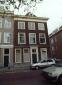 Eenvoudig 19e-eeuws PAND van goede verhoudingen met lijstgevel en deuromlijsting-hardstenen stoep met stoeppalen.