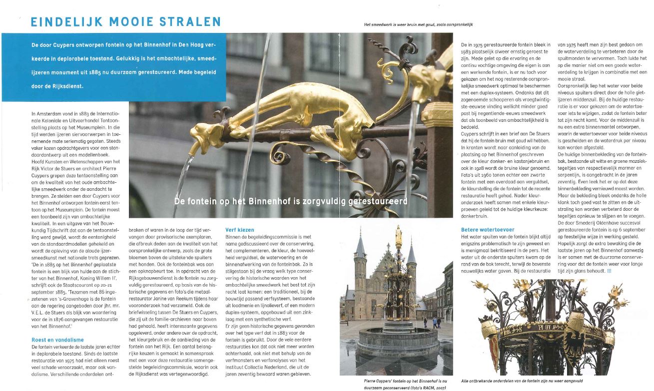 Naar ontwerp van P.J.H. Cuypers in 1885 door C.J. Vincent & Co in neo-gotische trant uitgevoerde smeedijzeren FONTEIN met cirkelvormig hardstenen bassin, gesitueerd op het Binnenhof en aangeboden door Victor de Stuers namens 86 ingezetenen aan de leden van de Staten-Generaal, ter nagedachtenis van graaf Willem II - de Roomse-Koning - en naar aanleiding van de in 1876 begonnen restauratie van het Binnenhof (gerestaureerd ter gelegenheid van het Monumentenjaar M'75 en bij die gelegenheid op een andere plaats herplaatst).