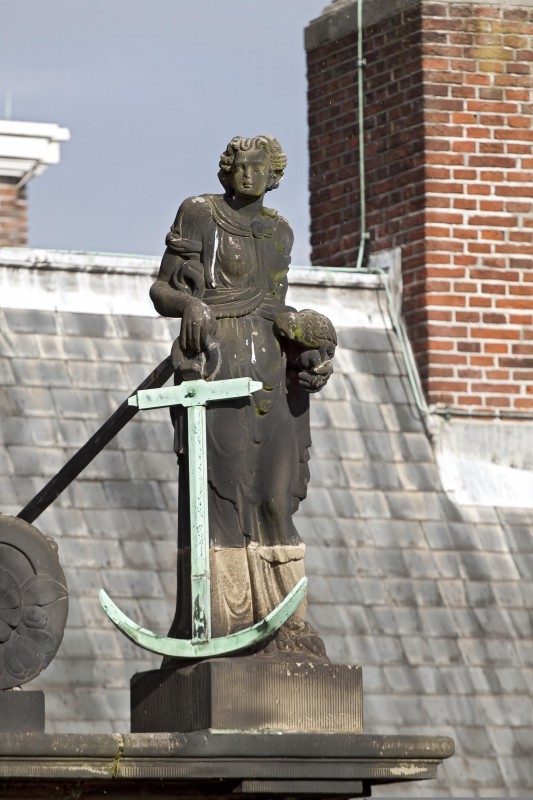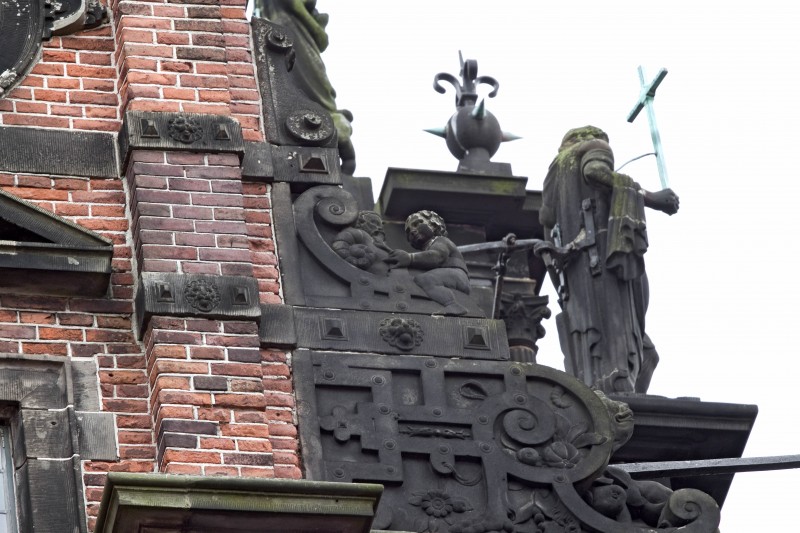 Stadhuiscomplex bestaande uit twee delen: het oude raadhuis uit 1564-1565 en de uitbreiding uit 1733 langs het Kerkplein. Het oudste deel is één van de eerste gebouwen in de Noordelijke Nederlanden in de stijl van de Hollandse Renaissance. De vnl. door Jan Baptist Xaverij vormgegeven lange vleugel uit 1733 langs de zijde van het kerkplein is in Lodewijk XIV- stijl opgetrokken. Van het exterieur valt vooral de monumentale middenrisaliet met beeldengroepen op.