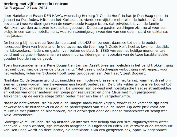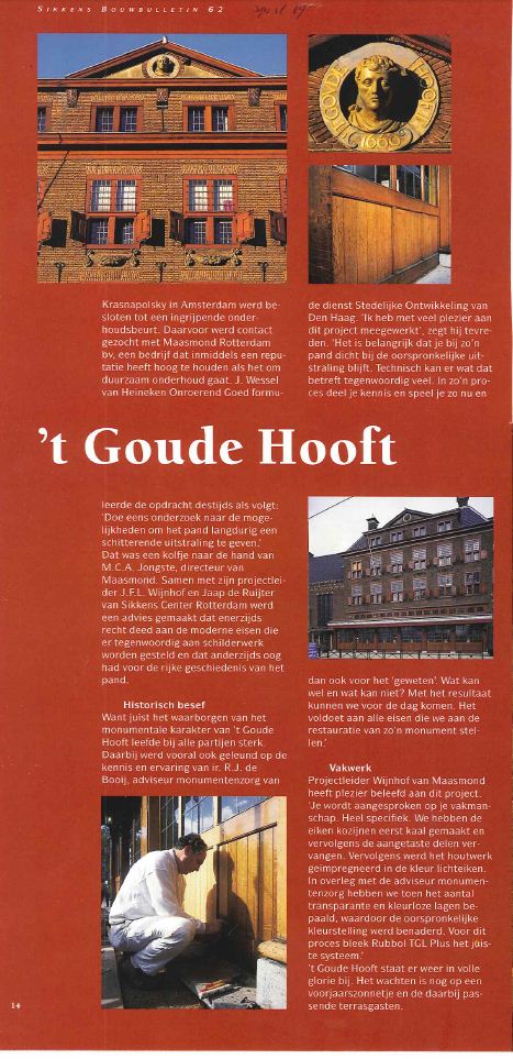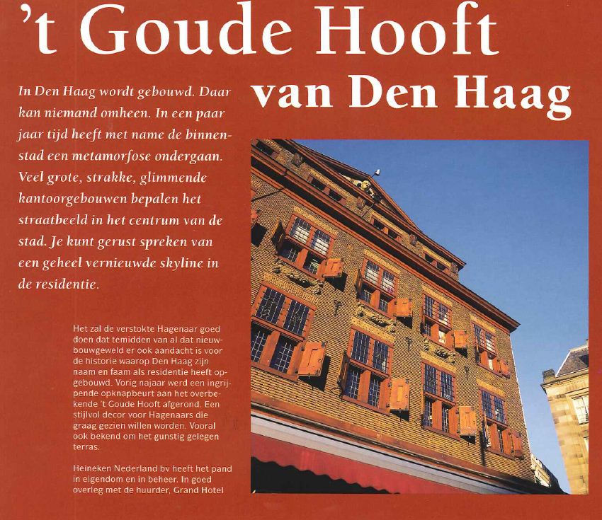 Restaurant "Het Goude Hooft" uit 1938 gebouwd naar ontwerp van architect F.A. Warners in de historiserende trant van de Delftse School. Het is een vergrote en enigszins aangepaste kopie van de herberg "Het Goude Hooft" die op deze plaats in 1660 werd gebouwd naar ontwerp van Pieter Post. Het pand markeert de hoek van de Grote Halstraat en de Hoogstraat. Omschrijving.