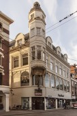 Voormalig modemagazijn (kledingwinkel) op de hoek van de Dagelijkse Groenmarkt en het Achterom uit 1906 naar ontwerp van de architecten A. Jacot en W. Oldewelt, bestaande uit drie bouwlagen en kapverdieping.