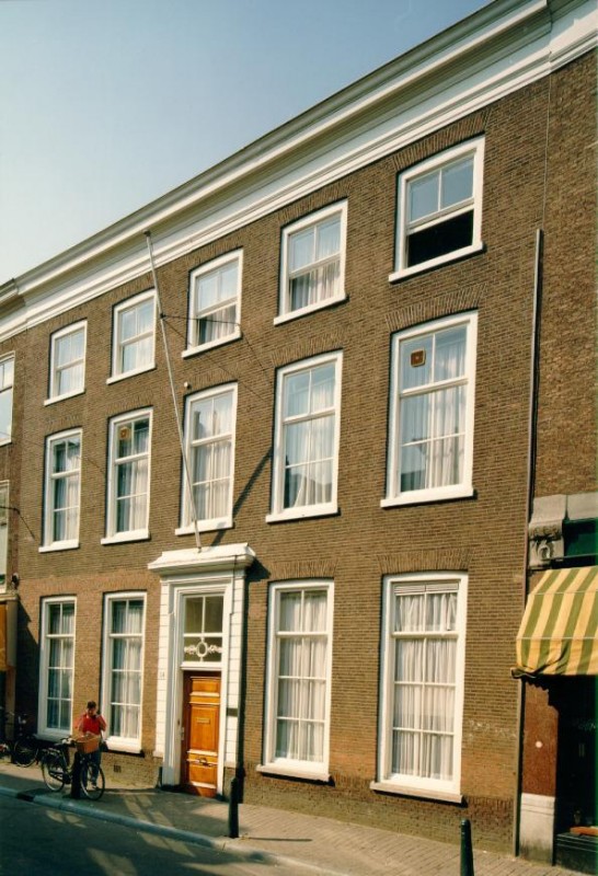 Fors achttiende eeuws pand met lijstgevel bestaande uit hoge begane grond en eerste verdieping en een gedrukte tweede verdieping. De in schoon metselwerk uitgevoerde lijstgevel is sober uitgevoerd met negentiende eeuwse schuifvensters met grote roedeverdeling. De ingangspartij heeft een pilasteromlijsting in rustica met hoofdgestel.