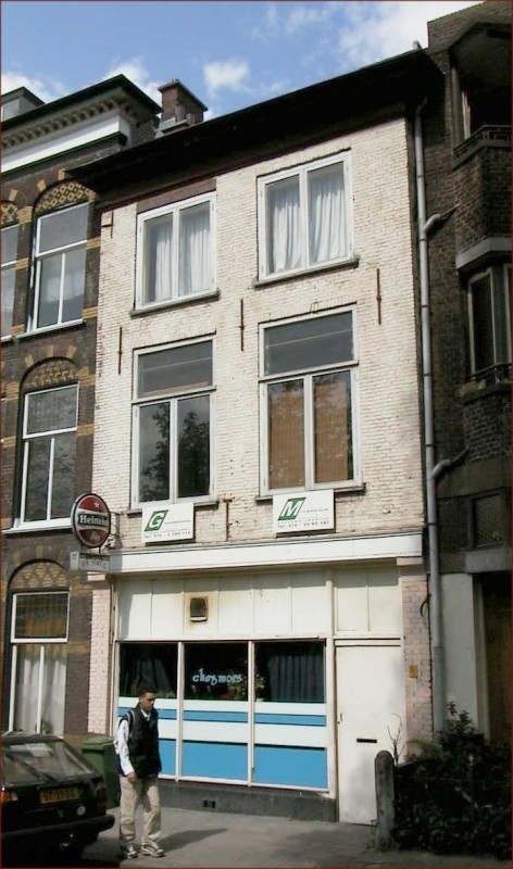 Pand uit de 18de eeuw ter breedte van twee vensterassen, bestaande uit parterre en twee verdiepingen. Eenvoudige lijstgevel met in de tweede verdieping vensters met negenruitsschuiframen.