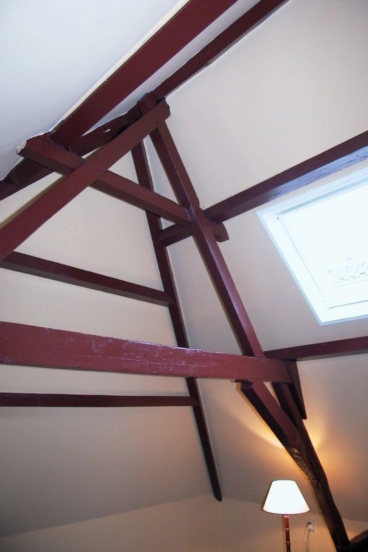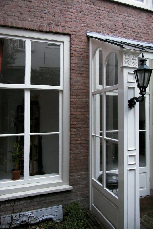 Pand ter breedte van vier vensterassen, bestaande uit parterre en twee verdiepingen met een zadeldak waarvan de nok evenwijdig loopt aan de straat Hierachter een tweede zadeldak. De voorgevel dateert in de huidige vorm uit het laatste kwart van de 18de of het begin van de 19de eeuw. De vensters van de tweede verdieping stoten door in de houten kroonlijst.