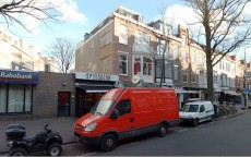 Als winkel-woonhuis rond 1905 gebouwd pand in overgangsarchitectuur. De vrijstaande rechter zijgevel is tussen 1910 en 1925 van geschilderde muurreclames voorzien voor drie firma’s. Twee voor de firma W.A. Streef & Co, een voor de piano en orgelhandel S.C van Oudheusden & Co en een voor de timmerman/metselaar A. van der Hoek.