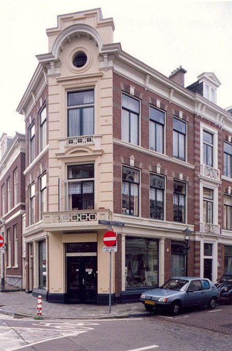 Bouwblok, tezamen met Prinses Mariestraat 2 t/m 6, uit 1882-1883 op de hoek van de Frederikstraat en Prinses Mariestraat met winkels en bovenwoningen op een rechthoekige plattegrond in eclectische neo-renaissance naar ontwerp van H.P. Swart gebouwd.