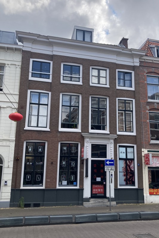Breed pand uit het eerste kwart van de 19e eeuw met details in Empirestijl bestaande uit souterrain en drie bouwlagen onder kap. De brede, vier assen brede voorgevel heeft een middenrisaliet en hoekpilasters; geprofileerde hardstenen plint. De gevel, uitgevoerd in schoon metselwerk, wordt beeindigd met een forse, geprofileerde kroonlijst. In de gevel vensters uit de bouwtijd met grote roedeverdeling. De entree heeft een klassieke omlijsting van pilasters en hoofdgestel in Empirestijl. De oorspronkelijke houten paneeldeur is vervangen door een storende glazen deur.