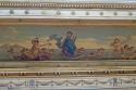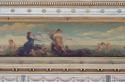 Net als bij het Paviljoen von Wied heeft de zee met haar geheimzinnige leven onder water als inspiratiebron voor de decoratie gediend. Zo zijn de kapitelen versierd met vriendelijke glanzend witte dolfijnenkoppen met goudgekleurde open bekjes en ogen. Gevleugelde zeedraken krullen zich rond de patrijspoorten en de aanzetten tot de steekkappen worden versierd met schelpjes. De vier schilderingen onder de koepel zijn allegorische taferelen die de jacht, de visserij, de muziek en de zeegod Neptunus verbeelden. Zij zijn geschilderd door het atelier van de Brusselse schilder Henri van Hoeck. De opbouw van alle vier is hetzelfde; de personifacties van het thema zijn centraal in de voorstelling afgebeeld. Zij laten zich in een schelp over het water voorttrekken door dolfijnen of zwanen. Daaromheen dartelen andere zeedieren, putti en nimfen die zich met elkaar op het water vermaken. De zee is kalm, de lucht is blauw met witte wolken. Neptunus wordt vergezeld door zijn vrouw Amphitrite. Hun wagen wordt getrokken door zeepaarden, geholpen door mannen die de steigerende dieren in bedwang houden. De dolfijn komt niet toevallig op de schilderingen voor; dit is de vis die Neptunus erg dankbaar was omdat een dolfijn Amphitrite voor hem opspoorde toen zij voor hem weggevlucht was om aan een huwelijk te ontkomen. Ook de Kurzaal van het eerste afgebrande Kurhaus had schilderingen onder de koepel. Alleen waren het toen geen allegorieën, maar realistische voorstellingen in de stijl van de Haagse School van Scheveningse bomschuiten die voor het Kurhaus langs over zee voeren
