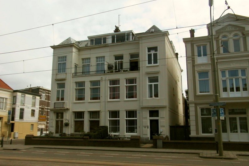 Rechter deel van een vrijstaand, als hotel/pension gebouwde dubbele villa in eclectische stijl uit circa 1880 bestaande uit drie bouwlagen onder samengestelde kap.