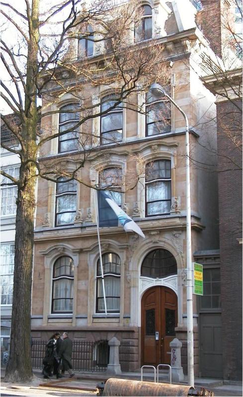 Het als herenhuis gebouwde, thans als kantoor fungerende, pand op rechthoekige plattegrond bestaat uit een souterrain waarboven drie bouwlagen en een zolderverdieping in het met leien gedekte, omlopende en afgeknotte schilddak. De breedte van het pand bedraagt drie vensterassen, waarvan de rechter de ingang bevat. De geheel met natuursteen beklede lijstgevel bezit een gebosseerd souterrain met getoogde vensters. De verdiepingen worden gescheiden door geprononceerde lijsten en het forse hoofdgestel vertoont voluutconsoles die de kroonlijst dragen. De getoogde vensters worden bekroond door geprofileerde lijsten die in de beletage en de eerste verdieping met sluitstenen zijn versierd. Alle vensters bezitten oreilles en getoogde houten wisseldorpels. De rondbogige ingangspartij bevat vleugeldeuren met panelen, snijwerk in de zwikken en een concaaf gebogen bovenlicht met kleine roedenverdeling. De boogvormige omlijsting van de ingang is versierd met gebeeldhouwde palmetten en een sluitsteen. De vensters van de eerste verdieping bezitten voluutversieringen met bladwerk aan de voet van hun omlijstingen. Het schilddak bezit aan de voorzijde twee forse dakkapellen met getoogde, geprofileerde omlijstingen, hoekvoluten en bekronende siervazen. Het dak wordt afgesloten door siersmeedwerk. In het interieur zijn vele onderdelen uit de bouwtijd bewaard gebleven. Voor het pand bevindt zich een ijzeren stoephek met vier stoeppalen. Waardering.