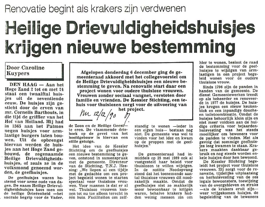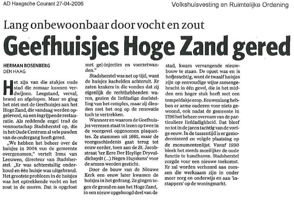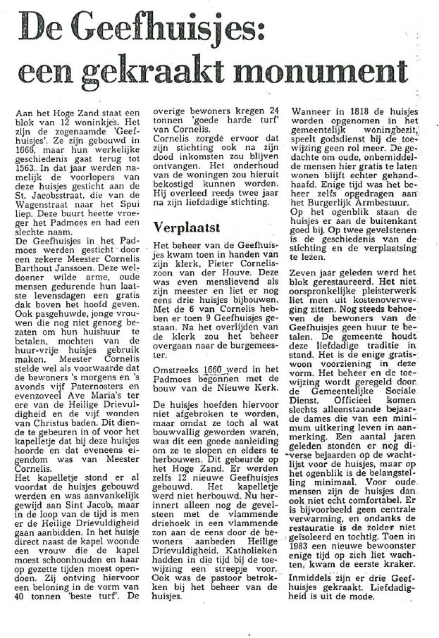 De Geef - ofwel Heilige Drievuldigheidshuisjes zijn in 1563 gesticht door Mr. Cornelis Barthout Janssoen, oorspronkelijk stonden ze op de plaats van de huidige Nieuwe Kerk. In 1661 herbouwd op het Hoge Zand.