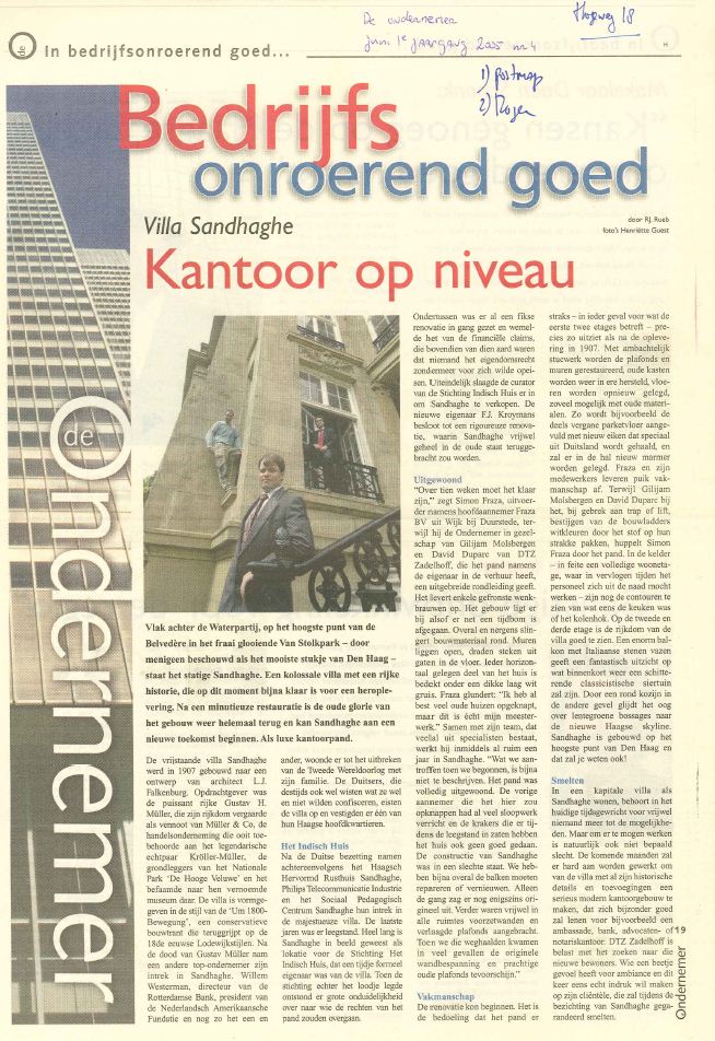 Vrijstaande VILLA uit 1907 omgeven door een tuin en begrensd met de straat door een smeedijzeren hekwerk op een natuurstenen sokkel. Het is gebouwd door architect L.J. Falkenburg in 1907 in opdracht van Gustav H. Muller. De vormgeving van villa Sandhage is die van de "Um 1800-Bewegung", de op de 18e-eeuwse Lodewijkstijlen teruggrijpende, conservatieve bouwtrant die in de periode rond 1910 opgang maakte. Het pand is gelegen op het hoogste punt van het glooiende terrein van het Van Stolkpark.
