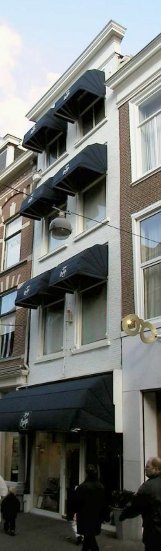 Pand ter breedte van twee vensterassen, bestaande uit parterre en twee verdiepingen met zolderverdieping. Gepleisterde lijstgevel, l8de eeuw. Laat 19de eeuwse winkelpui gemoderniseerd met behoud van de gietijzeren zuiltjes.