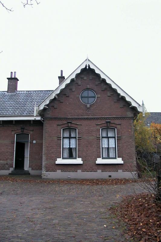 Twee geschakelde machinistenwoningen uit 1883-1885 op U vormige plattegrond, onderdeel van het sluizencomplex en gemaal Houtrustweg naar ontwerp van J. van der Vegt in sobere eclectische trant