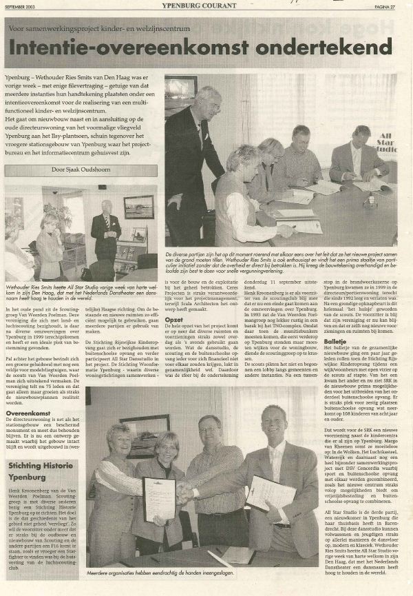 PORTIERSWONING YPENBURGOp onregelmatige grondslag met twee bouwlagen in cubische vormen onder plat, licht overstekend luifeldak gebouwd woonhuis, in oorsprong bestemd als PORTIERSWONING, ontworpen in nieuw-zakelijke trant door M. Zwanenburg (1937). De bakstenen gevels, in oorsprong witgesausd op zwarte plint, zijn boven de vensters - in oorsprong met stalen, zilvergroene kozijnen en zwarte lekdorpels - voorzien van betonnen lateien. Bij de ZO-hoek zijn de van omlopende vensterpartijen en een ronde stalen hoekkolom voorziene gevels op de beganegrond teruggerooid ten behoeve van een overhuifd, betegeld terras; de uitkragende verdieping steunt hier op een stalen I-kolom op de ZO- hoek. De overluifelde ingang, met betegelde stoep en glazen windscherm aan de W-zijde, bevindt zich midden in de N-gevel, waarvan het rechtergedeelte is teruggerooid.