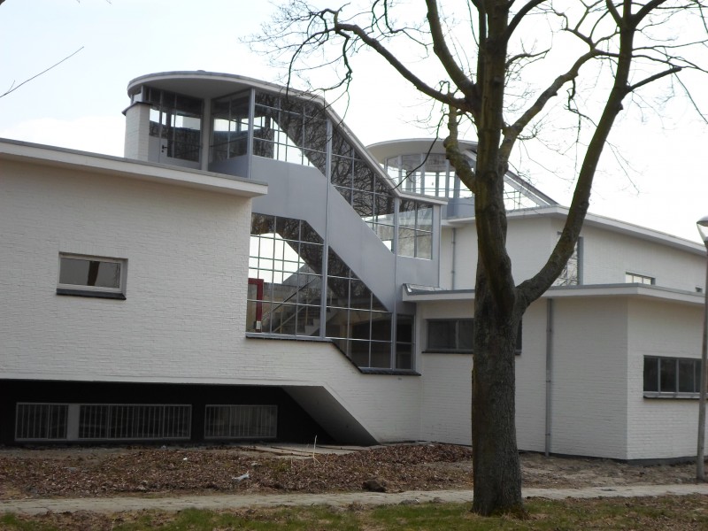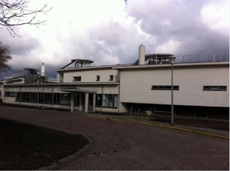 STATIONSGEBOUW YPENBURGNaar functionalistisch ontwerp van J.A. Brinkman en L.C. van der Vlugt op concave plattegrond met in- en uitspringende bouwvolumes uitgevoerd STATIONSGEBOUW, hoofdgebouw van het luchthavencomplex Ypenburg (1935-37), met een uitbreiding aan de noordzijde naar ontwerp van M. Zwanenburg.