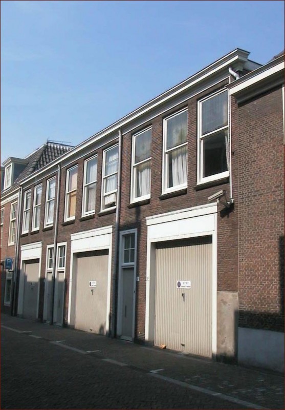 18e-Eeuws koetshuis met versierde deur en vensteromlijstingen van Prinsessegracht 28.