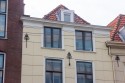 Breed pand met gepleisterde lijstgevel met sierankers. Het pand bestaat uit een voorhuis met daarachter een lang achterhuis met half schilddak.