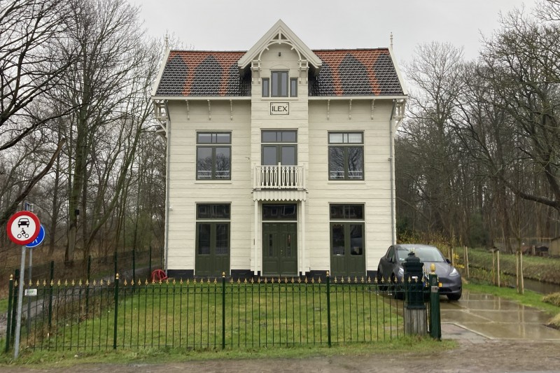 De Vliet is van oudsher een belangrijke waterverbinding tussen Haarlem en Delft. Langs deze route werden met name in de zeventiende, achttiende eeuw en negentiende eeuw talrijke buitens gesticht. Door de aanwezigheid van het stadhouderlijk hof woonden er in Den Haag veel patriciërs en andere aan het hof gerelateerde rijke burgers. In de loop van de zeventiende eeuw ontstond bij hen de behoefte om met name in de zomermaanden de drukke en vaak stinkende stad te ontvluchten. Het stichten van buitens niet te ver van de stad werd een ware rage. De strandwallen direct buiten de stad waren hiervoor bij uitstek geschikt. Zo ontstonden gehele linten van landgoederen waar de rijke bovenlaag zich in de zomer vermaakte. In de loop van de negentiende eeuw werden ze steeds meer gebruikt voor permanent bewoning. Veel hiervan is verdwenen maar een aantal ervan is nog bewaard gebleven. Het uit circa 1900 daterende pand aan de Jan Thijssenweg is een zeer late representant van deze ontwikkeling van het buiten wonen vlakbij de stad. Het pand op min of meer vierkante plattegrond bestaat uit een kelder en twee bouwlagen onder een hoge kapverdieping. De in baksteen opgetrokken gevels zijn voorzien van wit geschilderd pleisterwerk met imitatie rustica sierbanden en een brede zwart geverfde plint. De toepassing van dergelijke sierbanden is kenmerkend voor de aan het eind van de negentiende eeuw populaire neo-renaissance stijl. Het vele rijke houtsnijwerk van onder meer de consoles onder de dakoverstekken en de windveren is daarentegen weer geïnspireerd op de chaletarchitectuur. De drie vensterassen brede voorgevel heeft een risalerende middentravee die wordt beëindigd met een zogenaamde vlaamse gevel. De linkerzijgevel is ongeveer halverwege door middel van een afschuining verbreed. Het landhuis wordt gedekt door een samengestelde kap met gesmoorde kruispannen. De erfafscheiding tussen tuin en Jan Thijssenweg bestaat uit een ijzeren spijlenhekwerk met dubbele inrijpoort.