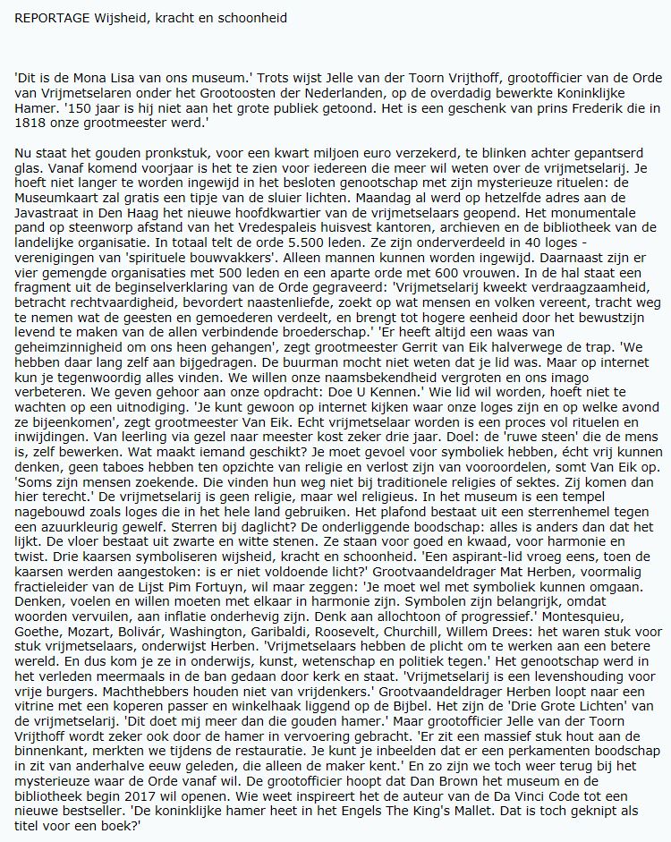De schuifvensters zijn in kleine roeden onderverdeeld en op de bouwlagen voorzien van luiken. De kroonlijst rust op houten klossen. Het dak bevat twee dakkapellen, waarvan een met een gebogen fronton, en hoge gemetselde schoorstenen.