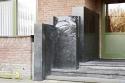 De hoofdingang heeft sculptuur in donkergrijze Namense hardsteen (links een uil en rechts een pelikaan) van de beeldhouwer J.C. Altorf. De hierachter gelegen vestibule en gang met de daaraangrenzende deuren naar de appartementen zijn nog authentiek. De stalen vensters zijn recentelijk grotendeels vervangen.