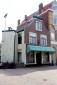 Pand, gedateerd in het fries van het hoofdgestel: 1830, op onregelmatige plattegrond. Het bestaat uit parterre, verdieping en kapverdieping in het schilddak dat aan de voorzijde is afgewolfd boven de ingezwenkte gevel. De breedte van het pand bedraagt twee vensterassen. De voorgevel bezit een rollaag en als afsluiting een houten hoofdgestel. Het gepleisterde pand heeft een driedelige, enigszins gewijzigde houten winkelpui met hardstenen plint uit het derde kwart van de 19de eeuw.